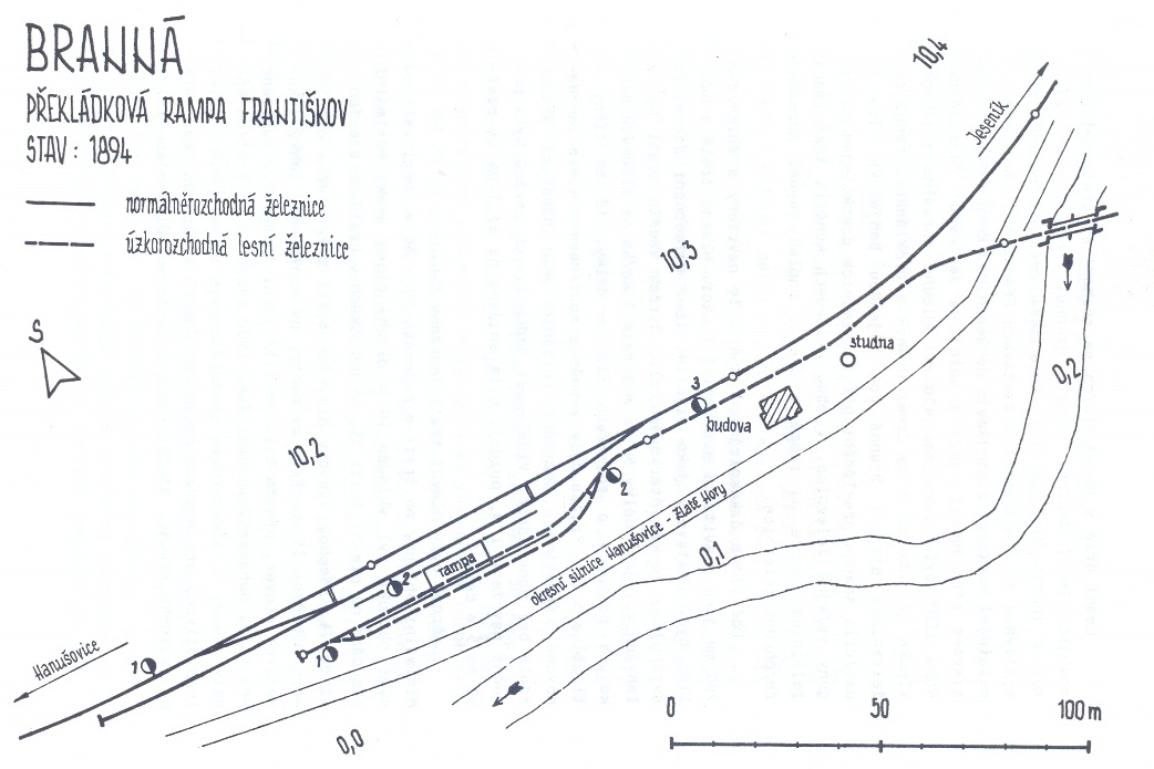 Milan F.: Píšeš pozdější plánek a máš tam rok 1894, zatím co můj je datovaný 1909... Ale to je jedno, já jsem chtěl jen upřesnit, že zastávka pro osobní vlaky byla ve Františkově zrušena ještě za 1. republiky, zatímco nákladiště (už bez úzké) se používalo k nakládce dřeva až do r. 1956.