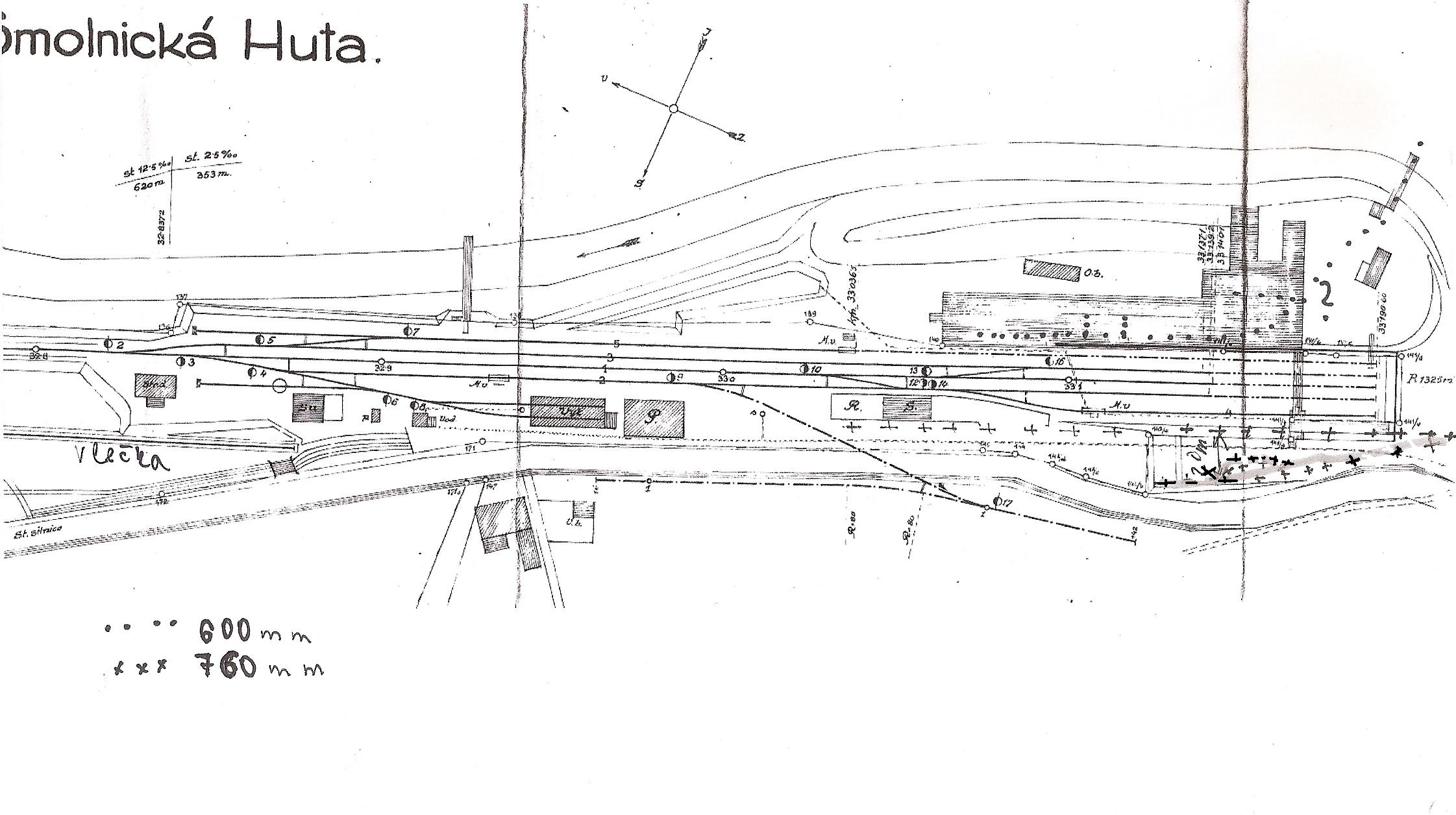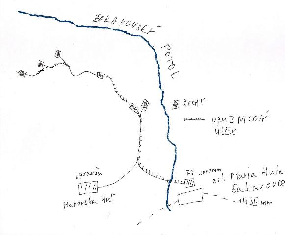 Ako prvý je plán stanice s lesnou železnicou a banskou železničkou – moja predstava, asi ako to tam fungovalo. K lesnej železnici a jej stanici asi iba toľko, že bola jednoduchá. Jedna koľaj k rampe - nakládková a druhá koľaj viedla bokom asi o 20 m súbežne s ňou - odstavná. Na druhej koľaji - odstavnej bola výhybňa pre obchádzku súpravy, neskôr bola výhybňa zrušená – posledné roky prevádzky. K banskej železničke iba toľko, presný stav neviem. Takže je možné že všetko bolo inak.