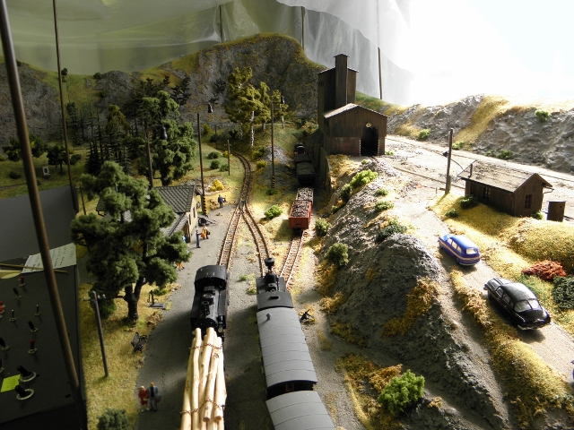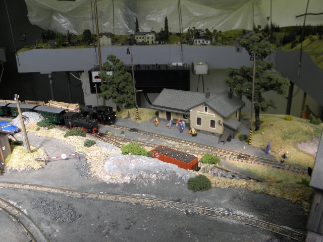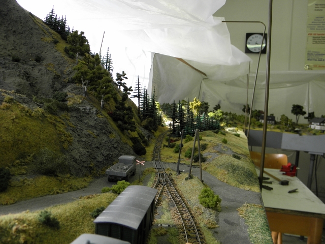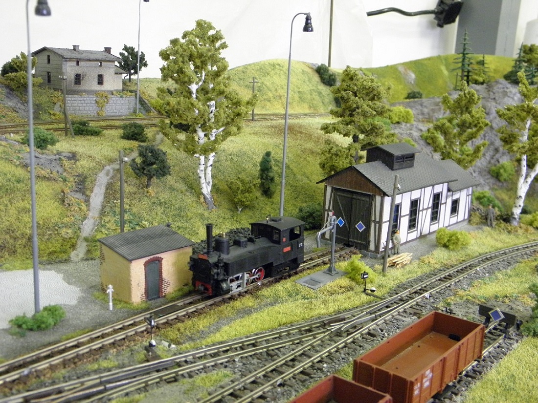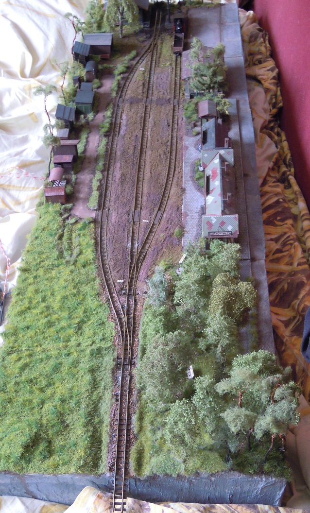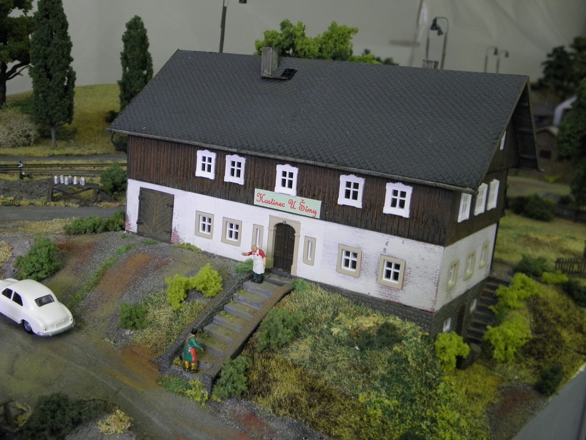 Plánek by byl, ale musí se zmenšit, dát dohromady a oskenovat a jaksi nejsou lidi, je to 6x A3, skoro každý díl je zvlášť. Jinak to zatím popíši slovně. Kamenice, nyní koncové nádraží, trať jde pravým obloukem z nádraží, otočí se o 180°, kousek rovinka, pak výhybna Stará - z provozních důvodů, dále trať pokračuje doprava v zářezu a po vrstevnici asi po 4 metrech dojede do stanice Heřmanice - zastávka, kde je vlečka pod drtičku kamene. V lomu drážka HO-f. Trať pokračuje zhruba 4 metry a pak se opět stáčí vpravo do nádraží Heřmanice u Frýdlantu. Je to model skutečných Heřmanic včetně budov a kolejiště. Na délku je to zkráceno v poměru 1:200. Púvodně toto kolejiště bylo postaveno do L 5x7 m, pak jsme se stěhovali do jiné místnosti, museli jsme ho upravit do tvaru U a nakonec jsme se opět stěhovali, takže jsme museli udělat další rohový díl. Tak nyní je kolejiště v podstatě obdélník, který nemá spojen jeden roh. Další fotky postupně přidám, musím je vytřídit. Jinak jsem sem napsal na popud z vlákna JHMD, kam dal kolega Ferdián fotky a článek z časopisu Modelleisenbahner z roku tuším 85 nebo 86.