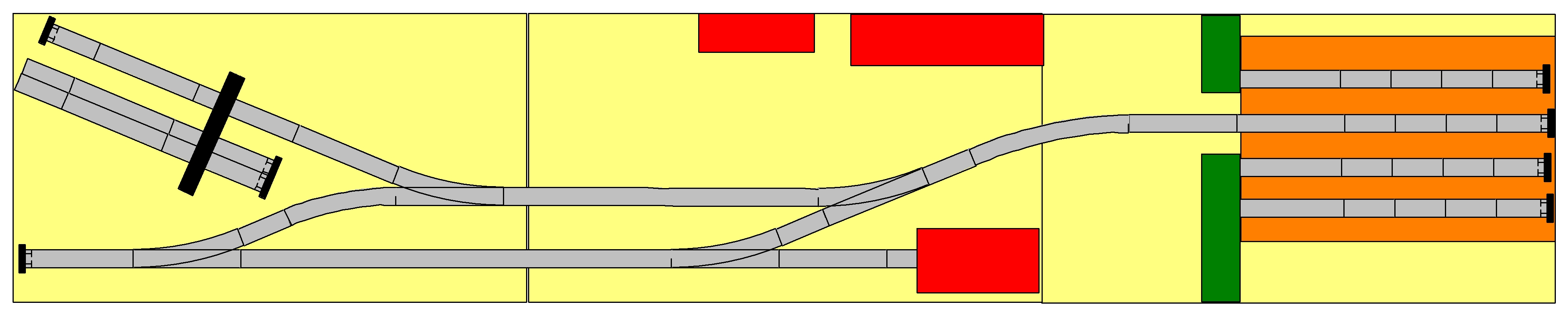 hank61 píše:Kdybych se měl vrátit k původnímu tématu lesní železnice, mohlo by to vypadat např. takto? Vlevo by bylo překladiště s portálovým jeřábem na normální rozchod.