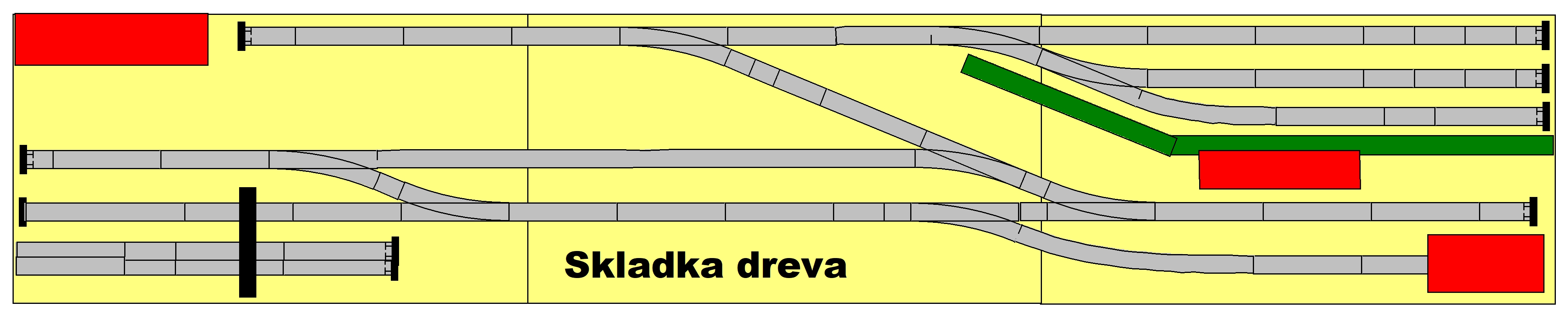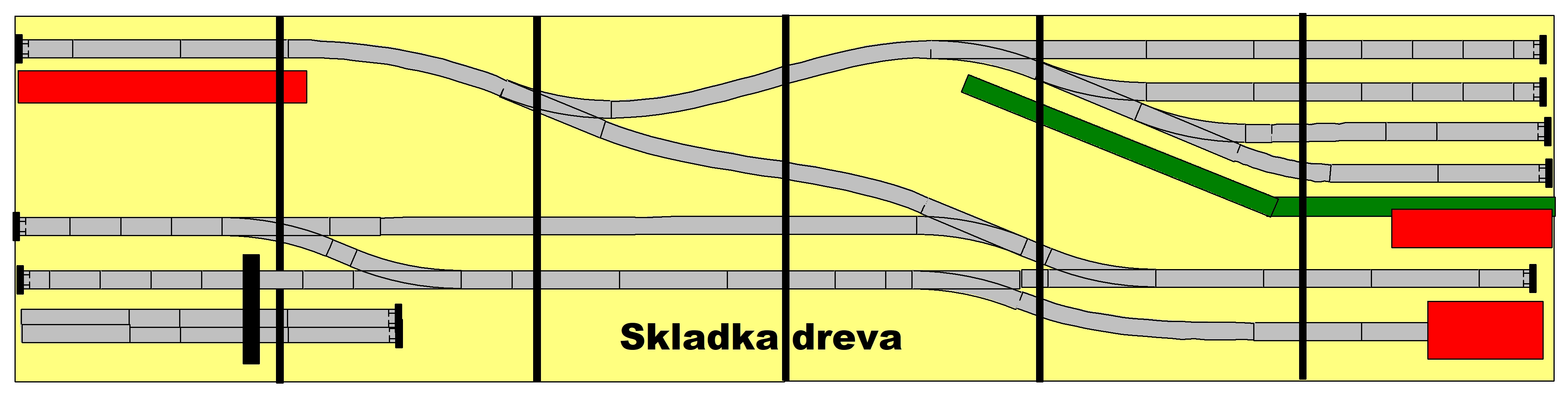 Ještě jsem zkusil modifikovat lesní nákladiště dle plánu Milana F. Vzhledem k malé šířce segmentu by se ze SN přijíždělo úvratí.