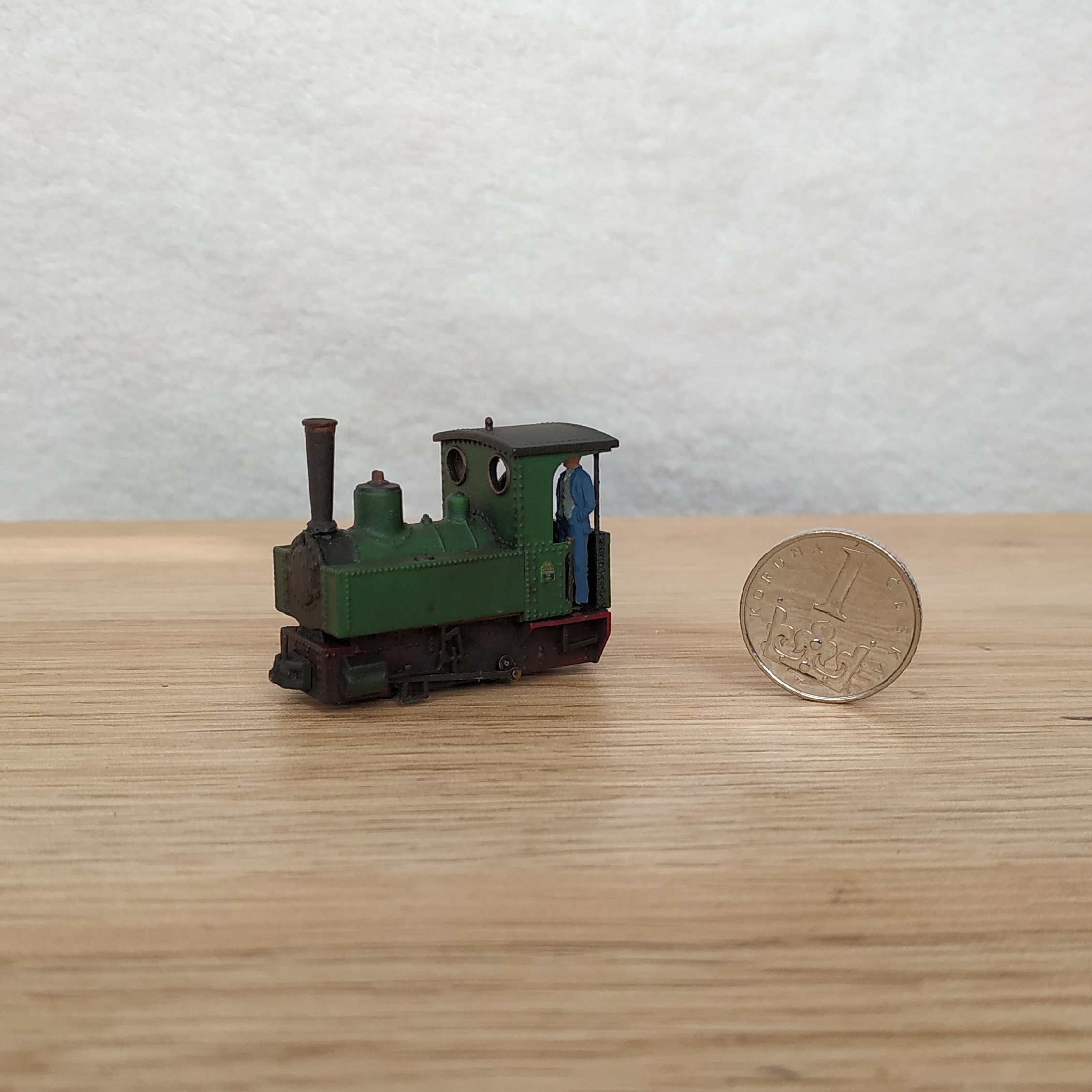 A tak jsem pořídil od Busche lokomotivu Decauville a částečně ji upravil budku, kde jsem zrušil zadní čelo a vytvořil pouze nízkou stěnu s madly až pod střechu a vytvořil imitaci kotle, armatur a dosadil postavičky obsluhy stroje.