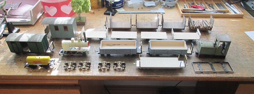 No a keď už som sa dostal k písaniu, tak ešte pridávam obrázok rozpracovaných vozidiel pre mierku 1f, aj keď teraz s tým dosť stagnujem, nakoľko sa viac venujem záhradnej železnici.