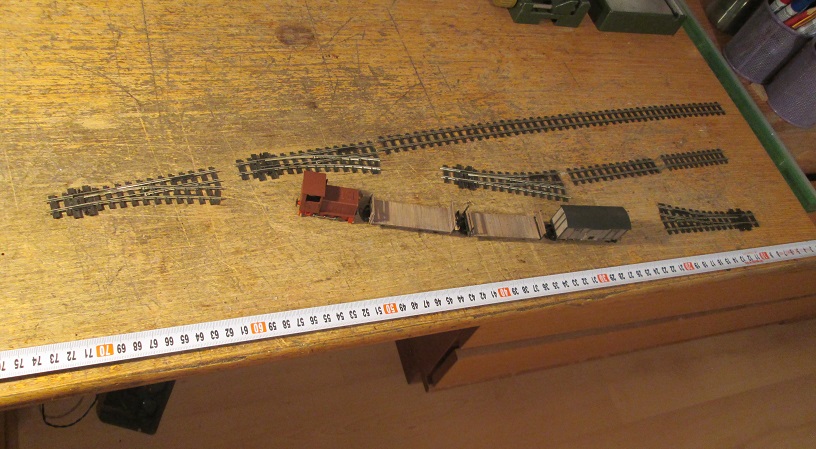 som si len dva o rozmeroch 60x45 cm. Postavil som nové moduly o rozmeroch 60 x 40 cm, takže to nové koľajisko bude skôr taká väčšia dioráma. Rozloženie koľají je ale veľmi podobné ako bolo na starých moduloch. Tiež mám rozostavanú malú presuvňu. K týmto zmenám (zmenšeniu) ma viedlo predovšetkým to, že budem mať väčší komfort v izbe po rozložení modulov a celé sa mi to zdá byť také komornejšie. Téma zostala tá istá: vláčik (3 – 4 vagóniky plus loko) vychádza z presuvne, ide okolo prímestských domčekov (prízemných) a prechádza do priemyselného areálu, kde je najskôr odbočka do malého liehovaru (?) a potom malým úsekom voľnej trate prichádza na dvor malého chemického podniku. Táto téma umožňuje prevážať pomerne široké spektrum tovaru, takže aj skladba vagónikov môže byť dosť rôznorodá, podobne ako tomu bolo na „smolenickej“ úzkokoľajke. Rozchod som ponechal ten istý, teda 16,5 mm čo predstavuje 600 mm v skutočnosti v tejto mierke. ( ono to nie je presné ale berie sa to ako úzus v tomto prípade). Hlavné budovy budú v polprofile, nejaké menšie budú postavené celé. Momentálne sa venujem zaštrkovaniu a vyrovnávaniu terénu (okolo koľají).