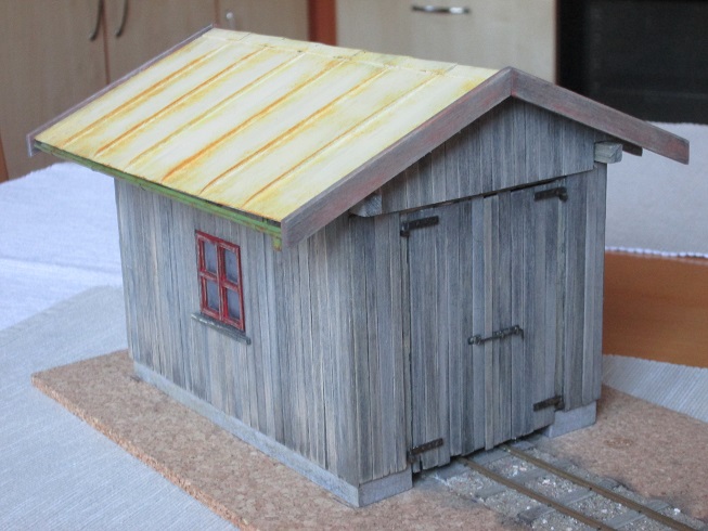 no predsa sa mi podarilo postaviť niečo aj v mierke 1f. Je to malá remízka pre malú motorovú lokomotívu (či skôr búda), snáď sa