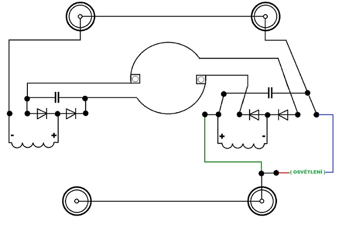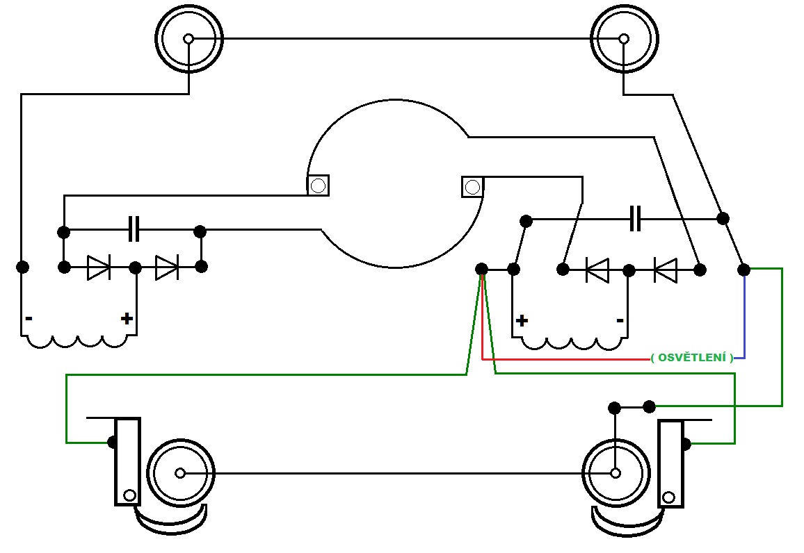 můstkem a páčkovým přepínačem umístěným v otvoru místo dálkového reflektoru pod střechou kabiny kterým se přepínal směr jízdy)