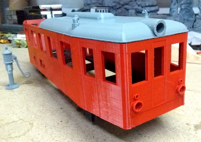 Dnes došlo na první pokusnou jízdu polotovaru Hurvajze. Zdá se,že čínský DC motor s převodovkou za pajdu by mohl zatím stačit. Ještě zbývá dořešit ovládání. Mám v záloze ještě jedno ovládání PIKO 35040 tak ho asi vyzkouším. Podvozky jsou udělané otočné jako u vagonů Piko. Pevné nápravy by asi nezvládaly moje vražedné oblouky R600. Ještě musím vytisknout nová kola. Původní výtisky dost silně imitují drncání na spojích kolejnic. :)