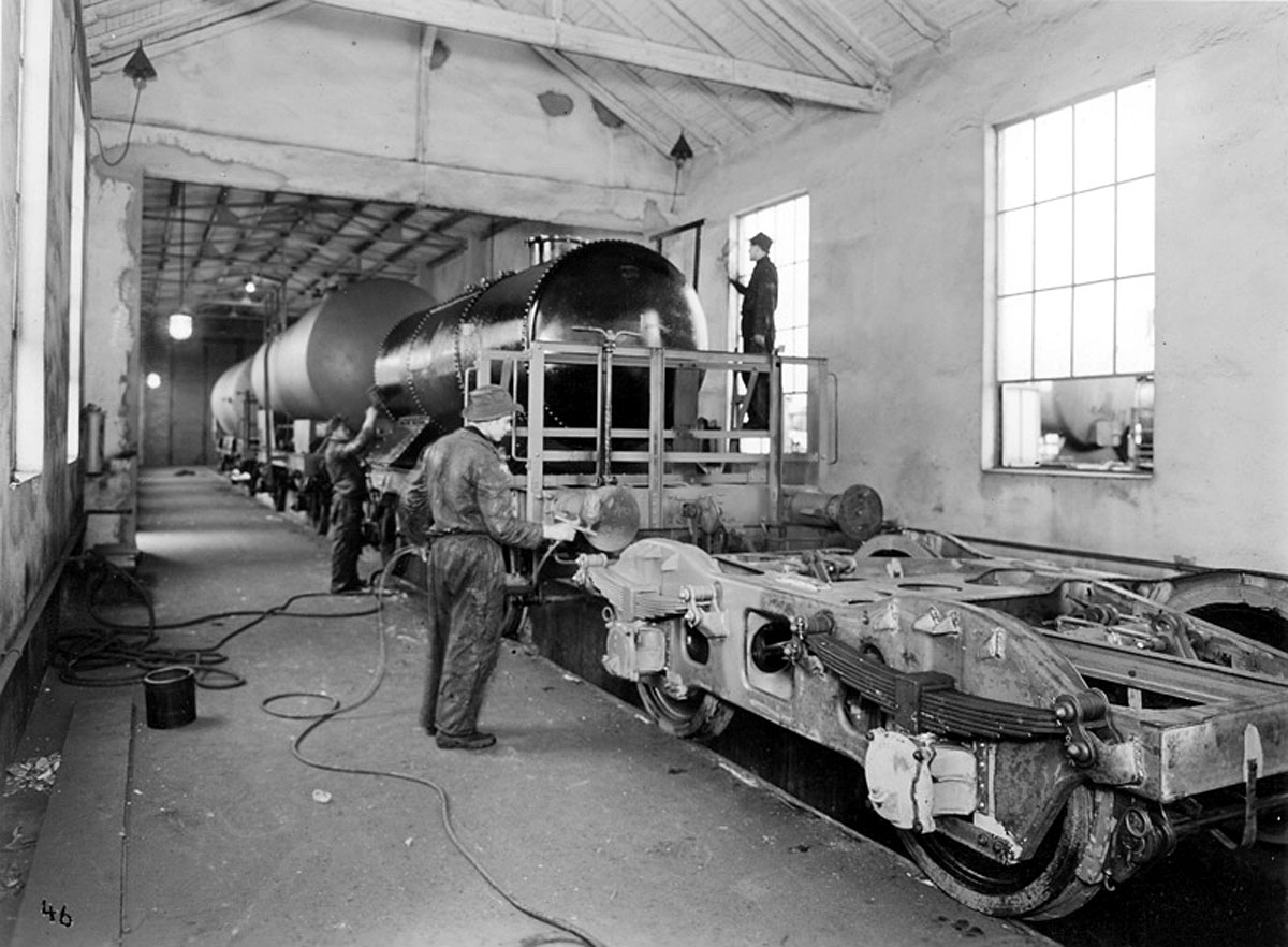 a tady stříkání ve vagonce Franz Kaminski za války, vypadá že již bezvzduché, vagonky i opravovaly vozy, proto ten archaický kus před podvozkem