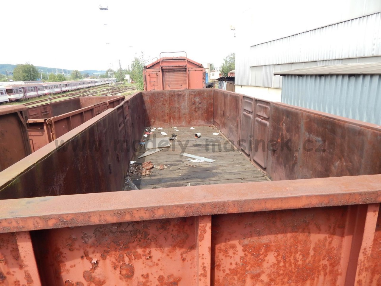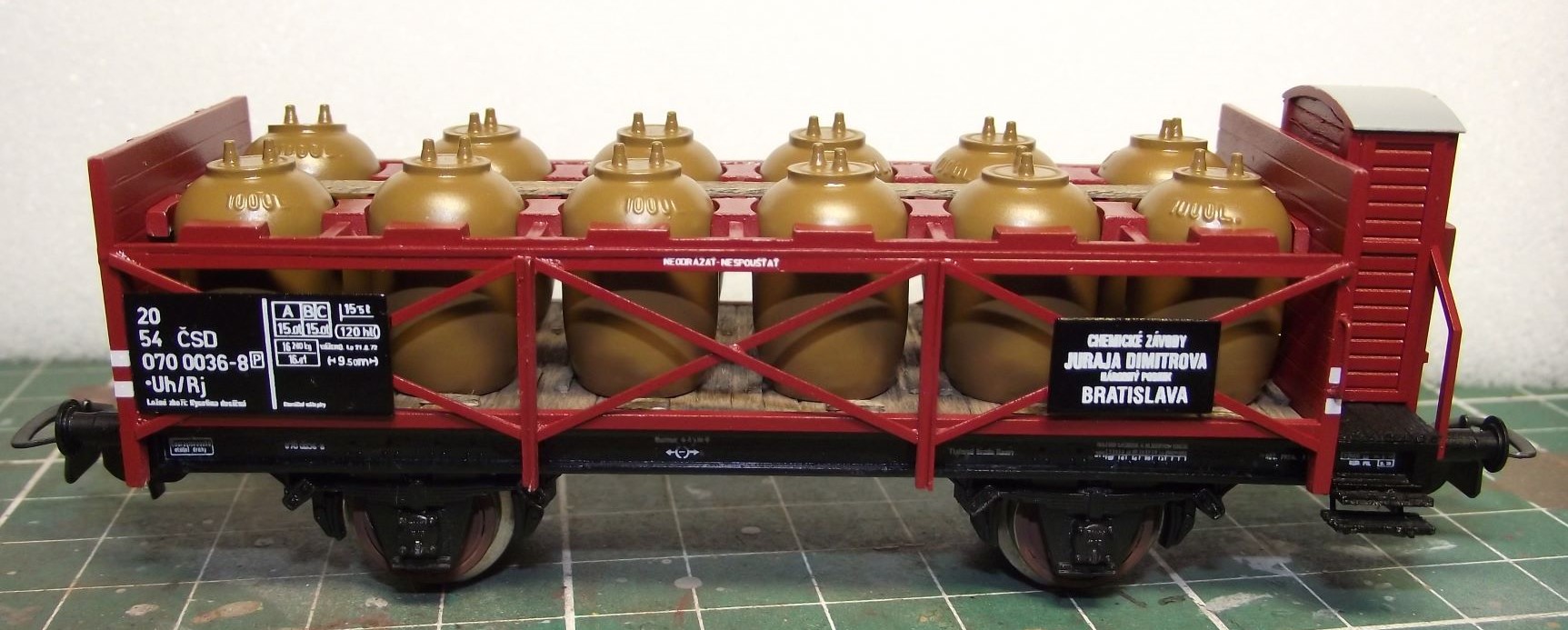 Před lety jsem měl také ambice vyšperkovat si sbírku o nádobový vůz, na který jsem sehnal od parostroje obtisky. Bohužel jsem v té době měl k dispozici jen dvě nekvalitní fotky nádobového vozu navíc každý jiného provedení. Taky jsem případnou odchylku o skutečnosti tolik neprožíval, tak jsem rozřezal nádobový vůz od Pika a předělal jej k obrazu svému. Bohužel se později ukázalo, že všechno je jinak , takže vznikl takový paskvil. Předělávat znovu už ho asi nebudu i vzhledem k nedostupnosti obtisků. Fotka předlohy k obtiskům ukazuje, že patří na jiný typ, ale to co jsem postavil zhruba odpovídá tomu co bylo na platformě Ztr a Vtr.