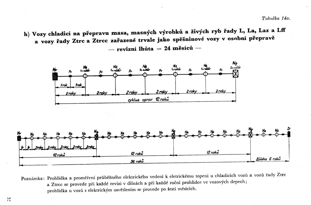 K údržbě nákladních vozů platil od roku 1964 až do vydání předpisu v 67 v 80. letech předpis V 34. Ten určoval udržovací řád a cyklus oprav, tehdy v systému střední oprava Ns a generální oprava Ng. V době vydání platil pro např. kotlové vozy cyklus pro opravy Ns co 3 roky, při Ns opravě se prováděl nátěr (případně oprava nátěru - to se ale moc nepraktikovalo - bylo to pracnější než nátěr celého vozu). Pro vozy Wa, Vsa... to byly dokonce jen dva roky. V roce 1968 docházelo zejména u vozů 10. skupiny k prodlužování cyklu pro Ns opravy na 4 roky a to platilo pro tyto vozy až do zavedení jednotného systému údržby předpisem V 67.