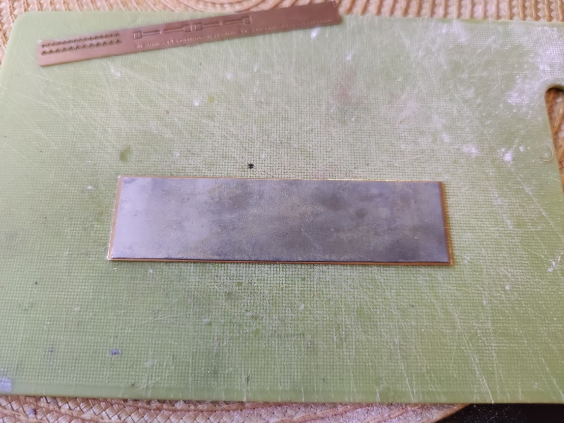 Přiložený olověný plech jsem vyválel a následně mezi dvěma rovnýma plochama vyrovnal oměřil s osazením od leptu podlahy, který je třeba dokonale vyhladit.