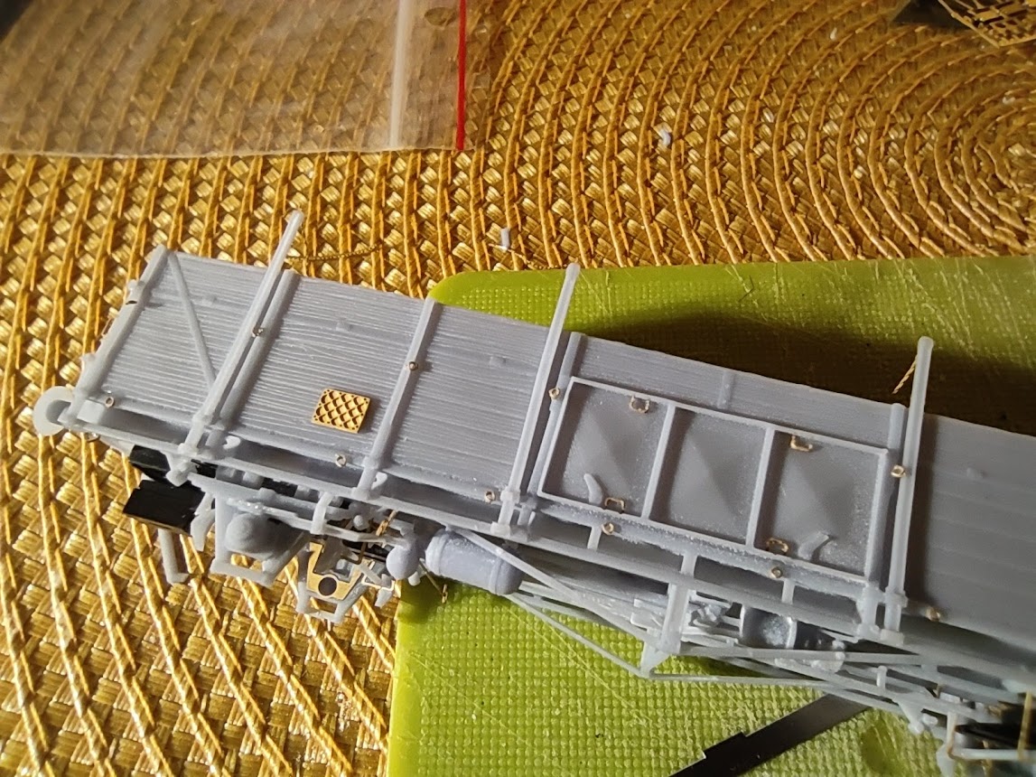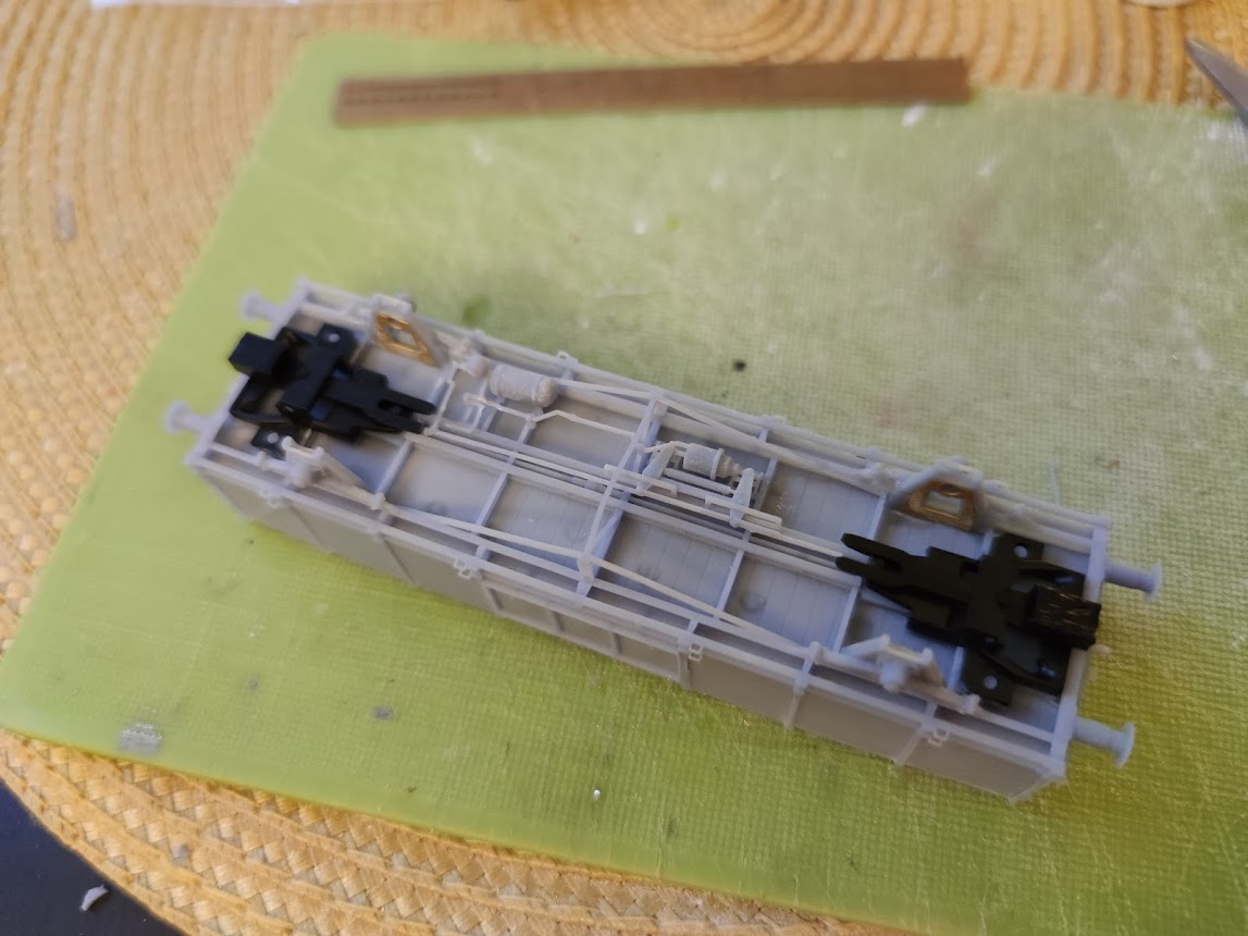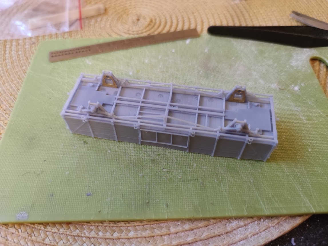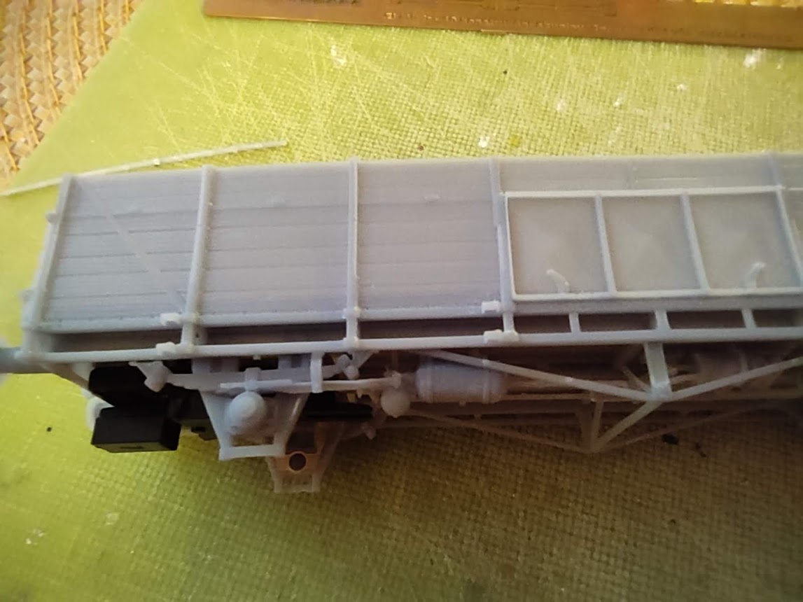 Ostřihl a nalepil na spodní stranu leptu podlahy a tím tak dovážil vůz na požadovanou hmoznost ve výsledném sestavení.