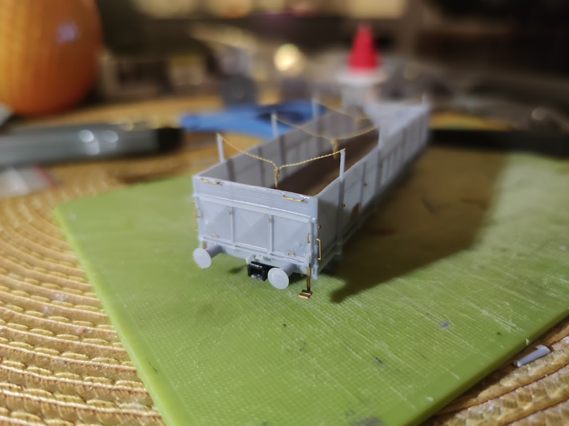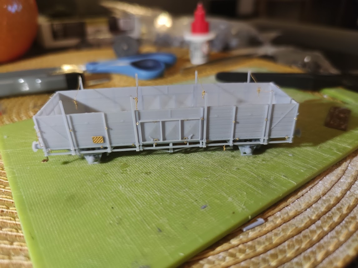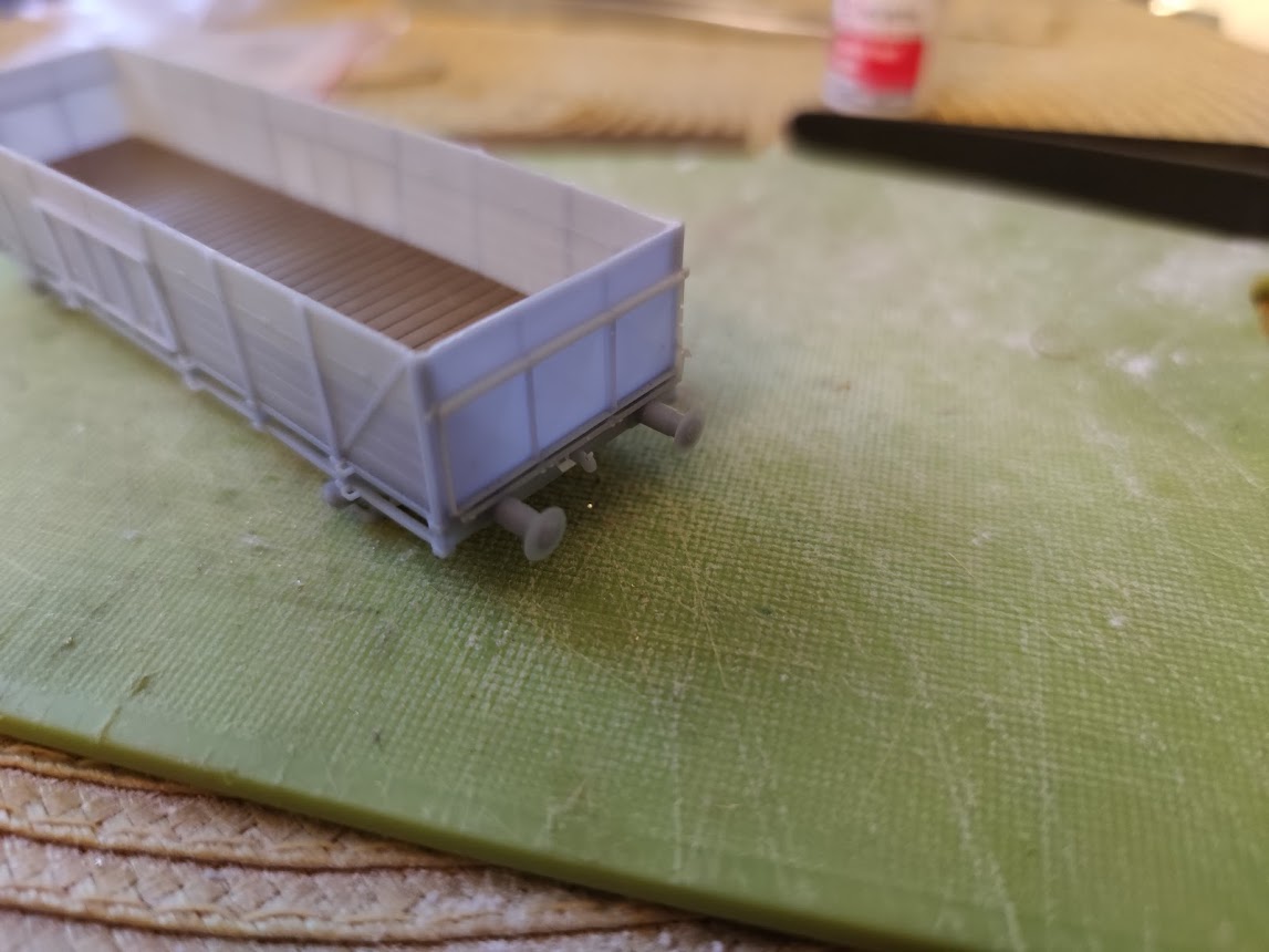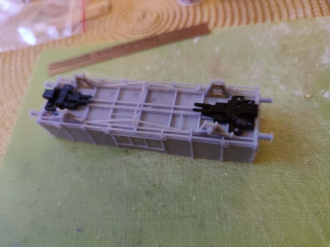 Ostřihl a nalepil na spodní stranu leptu podlahy a tím tak dovážil vůz na požadovanou hmoznost ve výsledném sestavení.