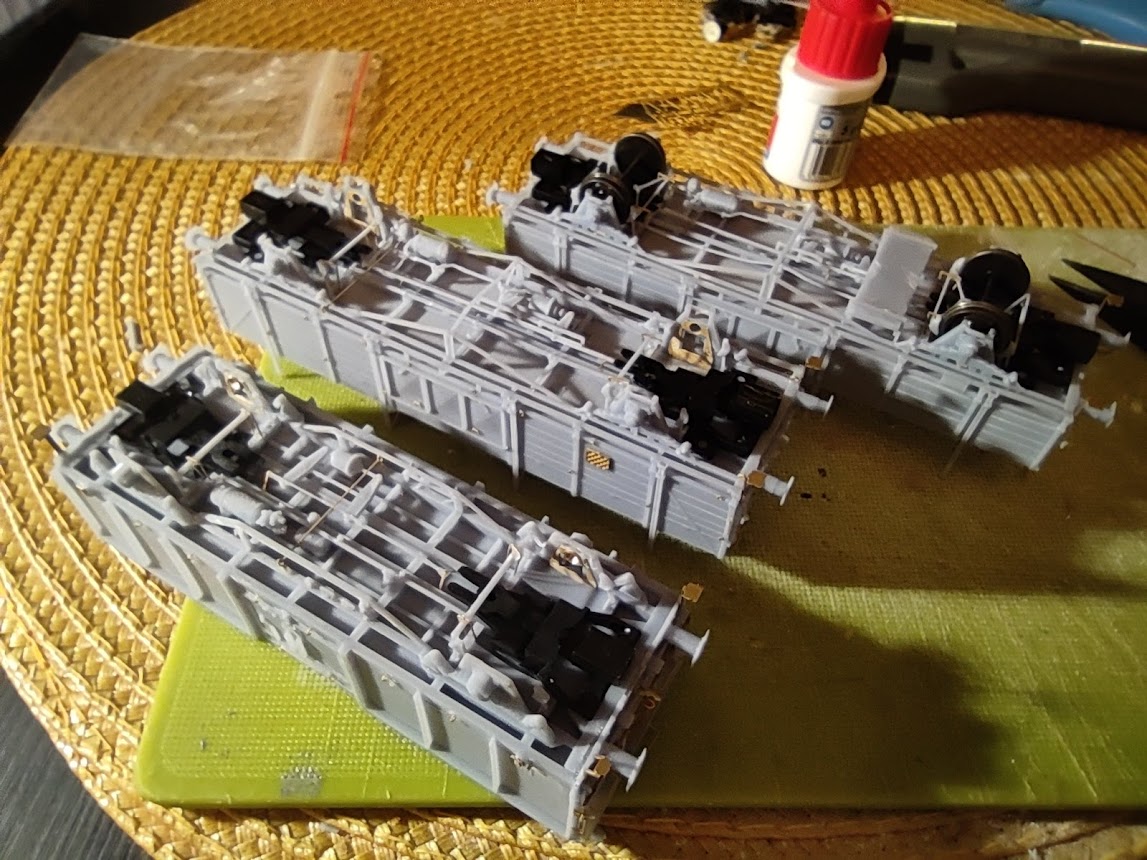 Kinematiky nebo pevná spřáhla vlepuji je jako druhé z důvodu následné kompletace brzdového potrubí. To je dodáváno jako kompletní s brzdovým systémem a je třeba jej podle nich lehce upravit odcvaknutím táhel a trubek.