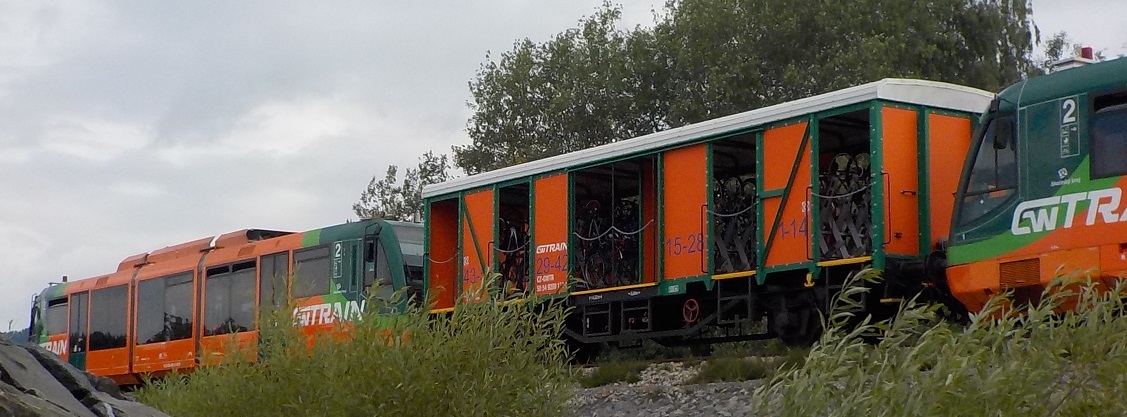Nevím kam, tak to šoupnu sem jako inspiraci - dvě fotky speciálu na přepravu kol, který používá GWtrain na Šumavě (foceno v půlce července 2018, výjezd ze stanice Černá v Pošumaví směrem na Novou Pec). Speciál je řazen uprostřed soupravy.