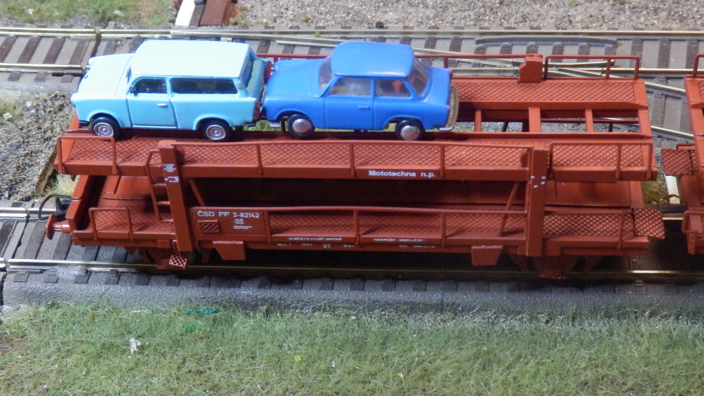 Edit: Ještě upravuju, že ten model podle popisu - bez UIC čísla - a toho, že má sklopné čelní klapky - odpovídá stavu zhruba v letech 1962-1967. Akorát nárazníky jsou blbě, chtělo by to kulaté. Dále by to chtělo i odpovídající náklad, třeba SIMCy 1500, Octavie "s křidélky", VW Brouky, Wartburgy 311, Cortiny Mk1, nebo SAABy 96*), a podobně. V dnešní době 3D tisků a 3D modelů volně nebo za levno ke stažení by to neměl být zas až takový problém.