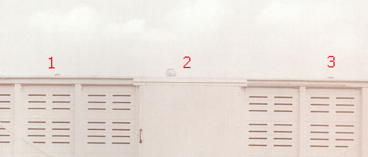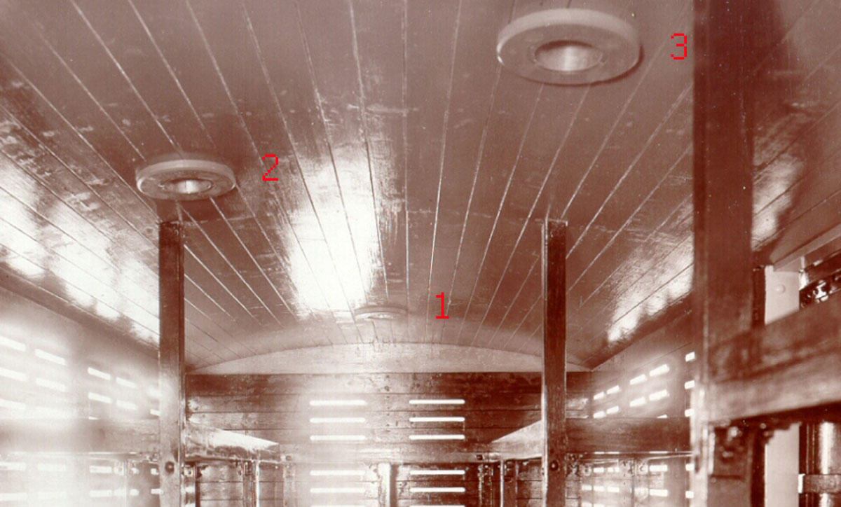 Za druhé žádná dýza tam není. Nasávací dýza (tj. omezovač průtoku vzduchu, který se do stává do vnitřku náporem během jízdy) na tomto voze chybí, protože vůz nemá zcela uzavřenou skříň. Vzduch se dovnitř dostával otvory ve stěně. Funkce je jasná, mezi kužely je díra, která je spojena s vnitřkem vozu. Obtékáním vzduchu kolem kuželů je vytahován vzduch nahoru.