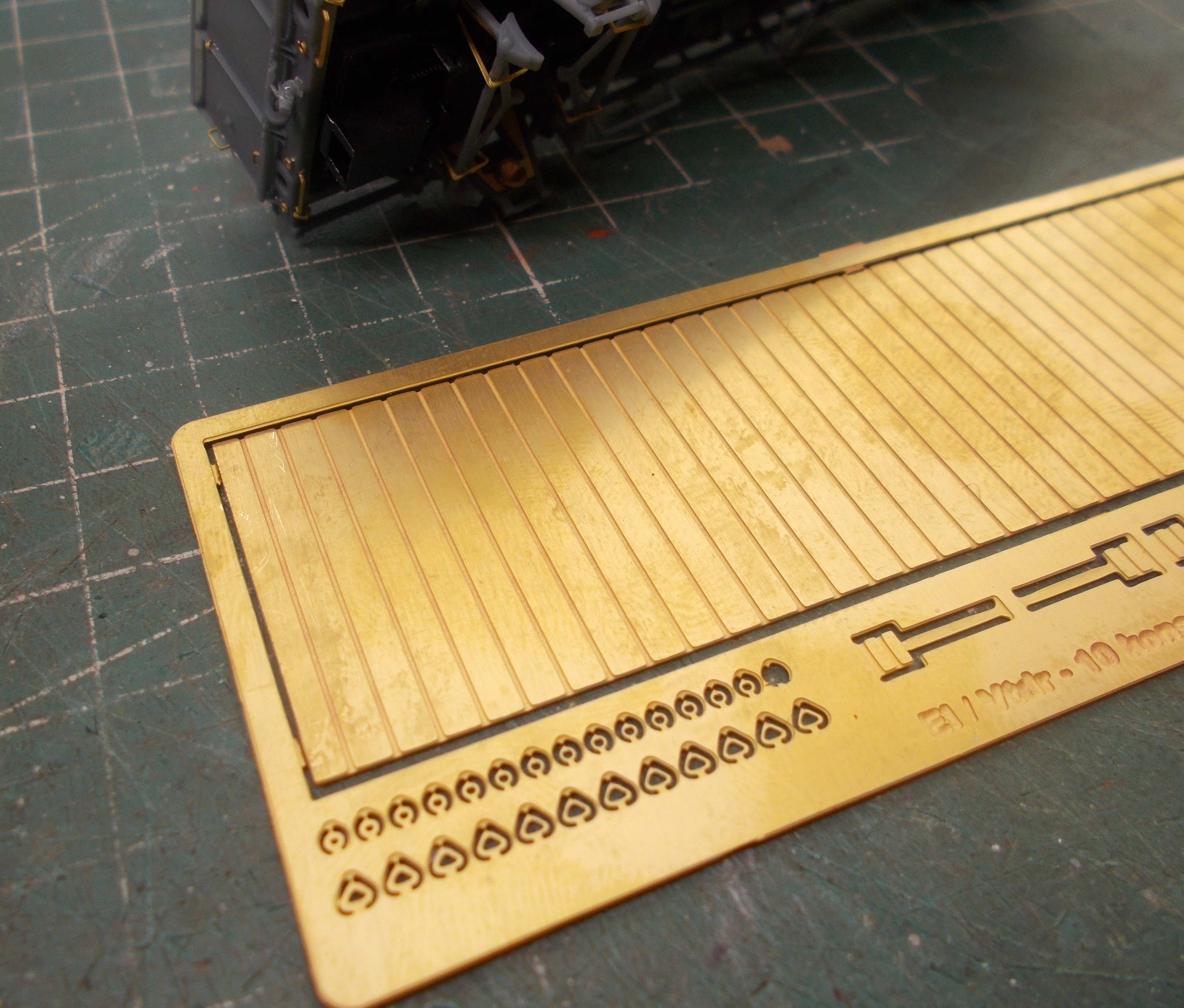 Tak jsem se pustil do další Vtdr (já si prostě nemůžu pomoct)i přesto ,nebo právě proto, že jsem už věděl co mě čeká. Stavba jde jako vždy rychle a celkem bez problémů. Výrobce vychytal např. dřívější deformace obdelníkových nárazníků. Použitý plast už nepraská při letmém doteku, takže k poškození dílů už taky nedochází. Přesto se něco vyskytlo, na bočnici ze strany podpěr byly deformovaná některá oka pro zasunutí klanic, s tím ale výrobce naštěstí počítá a ve stavebnici jsou náhradní očka, takže stačilo ta deformovaná odříznout a nahradit. Trochu problém je dvojkolí s délkou osičky 23 mm. Budu je muset vyměnit za delší 24 mm a to u všech vozů Vtdr a Vtdrp, které mám. U všech čtyřech vozů mi dvojkolí hodně plave a to jsem si opravdu dával záležet na usazení rozsoch a ložisek v nich. U jiných vozů od H0 moduly tenhle problém nemám. A pak ještě jeden detail, v leptu podlahy jsou i vázací oka, která by měla být u skutečného vozu upevněna v podlaze. Problém je, že nevím které kroužky tam patří, v katalogu nákladních vozů z roku 1960 se píše " 8 velkých uvazovacích kruhů, upevněných na podlaze ve směru podélníků" , stejně tak na parostroji "8 uvazovacích kroužků v podlaze". V leptu jsou ale kroužky a trojúhelníčky, oboje pod číslem 18. Fotku podlahy skutečného vozu jsem nenašel, takže tohle je nejspíš otázka na výrobce stavebnice. Jaké kroužky tam vlastně patří a v případě že jsou to ty trojúhelníčky jak jsou orientované? :D