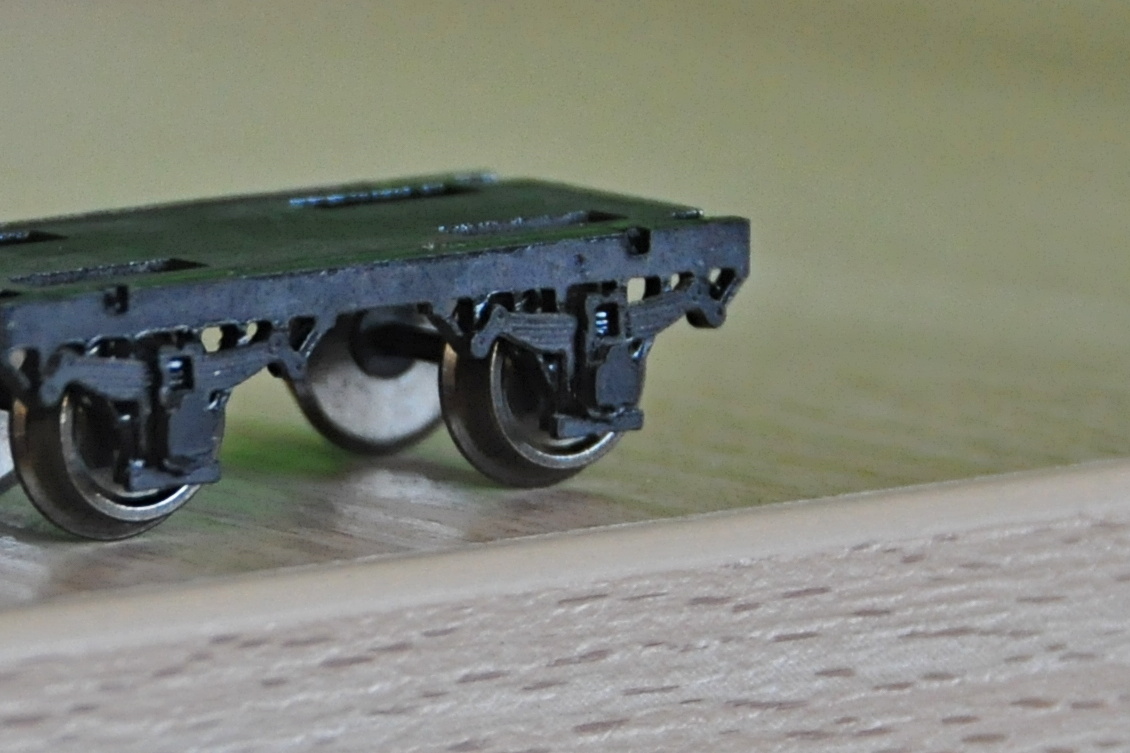 Trochu jsme experimentovali a nahradili jsme pokusně kartonové díly listových pružin, závěsek a ložiskových domků plastovými. Najednou je možné brát pojezd do ruky, nic se neroztřepí, nepoškodí, plastové vrstvy na sobě pevně sedí. Myslím si, že je to dobrý krůček kupředu.