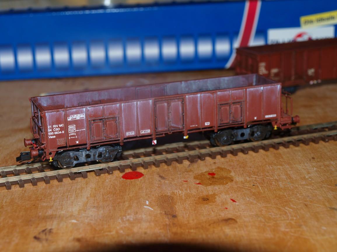 Dále jsem si zhotovil obtisky a aplikoval na kontejnery. Kontejnery se nakonec přilepil na vagón.