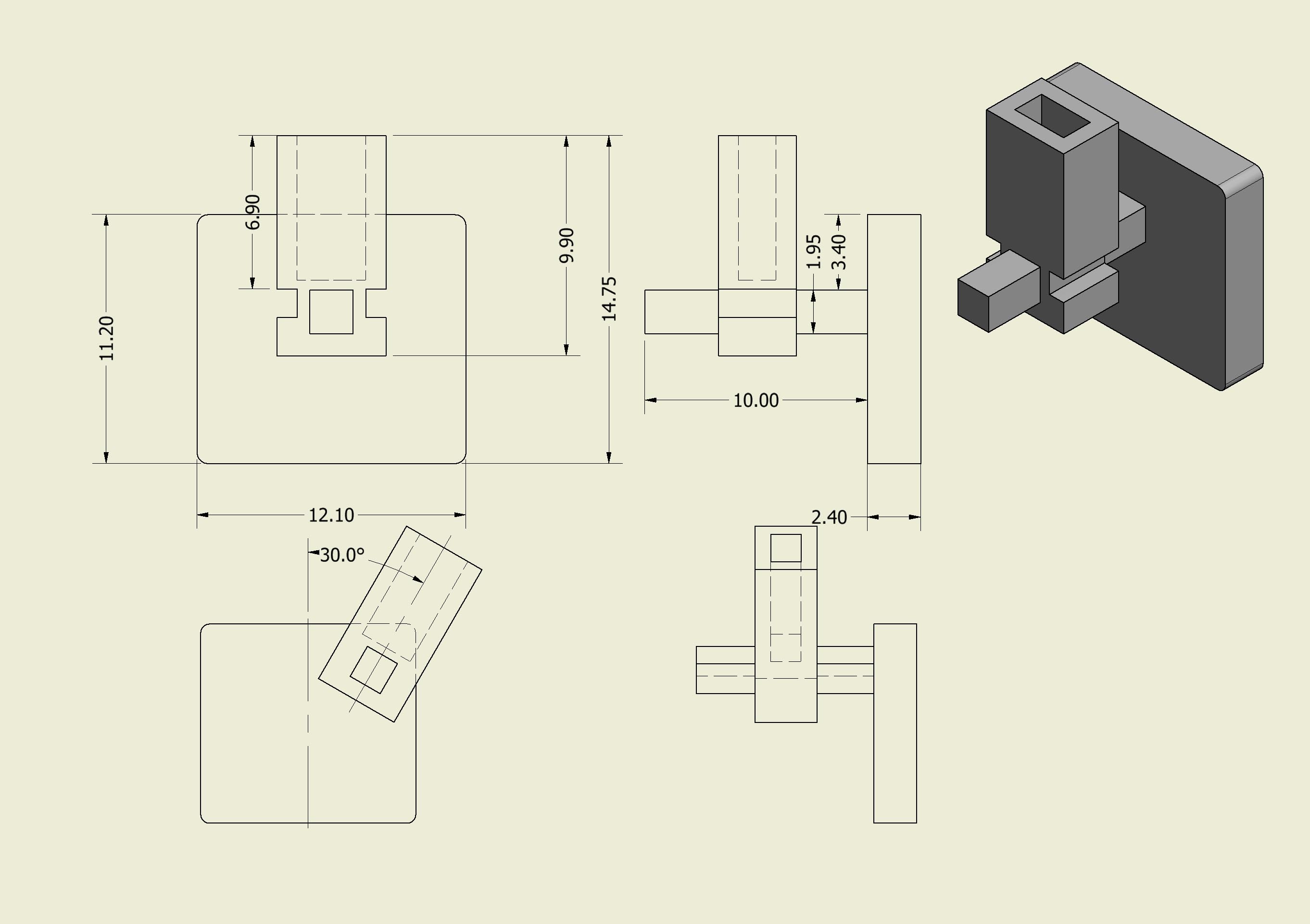 Kinematika je navržena na výšku podlahy 13,8mm. V podlaze je zapotřebí pro pohyb šachty připravit otvor o rozměrech min. 4,5x7mm. Střed otvoru musí ležet ve vzdálonosti 16,8mm nebo 20,6mm od čela nárazníků. Uvnitř vozu je také umístěna pružina (vinutá), případně je kinematika v základní poloze fixována vhodně natvarovanou strunou, umístěnou na horní ploše kinematiky. Lept obsahuje 2ks (pro 1 vůz). Pružina není součástí stavebnice. Při lepení šachty do vozu dbejte rozměru "e" dle NEM 362 (šachta je vůči nárazníkům zapuštěna o 7 - 7,5 mm) -