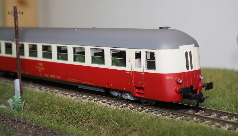 V horní části dvojkřídlých čelních dveří patří samozřejmě šedá zároveň s rozhraním střechy. Jak na motoráku (zadní čelo), tak i na Balmu. Tak to bylo od vyrobení. Tuším na Slovensku se chybné lakování začalo objevovat někdy v 90.letech. U ČD se to stále lakovalo správně a až s přechodem na nátěr se širokým 60cm pruhem slonová kost kolem dokola (konec 90.let) a to ještě až po nějakém čase (když už na část vozidel byl tento lak správně aplikován) si lakýrníci v dílnách zjednodušili práci a dveře natírali jednobarevně (červeně) v celé výšce, čímž celý design poškodili.