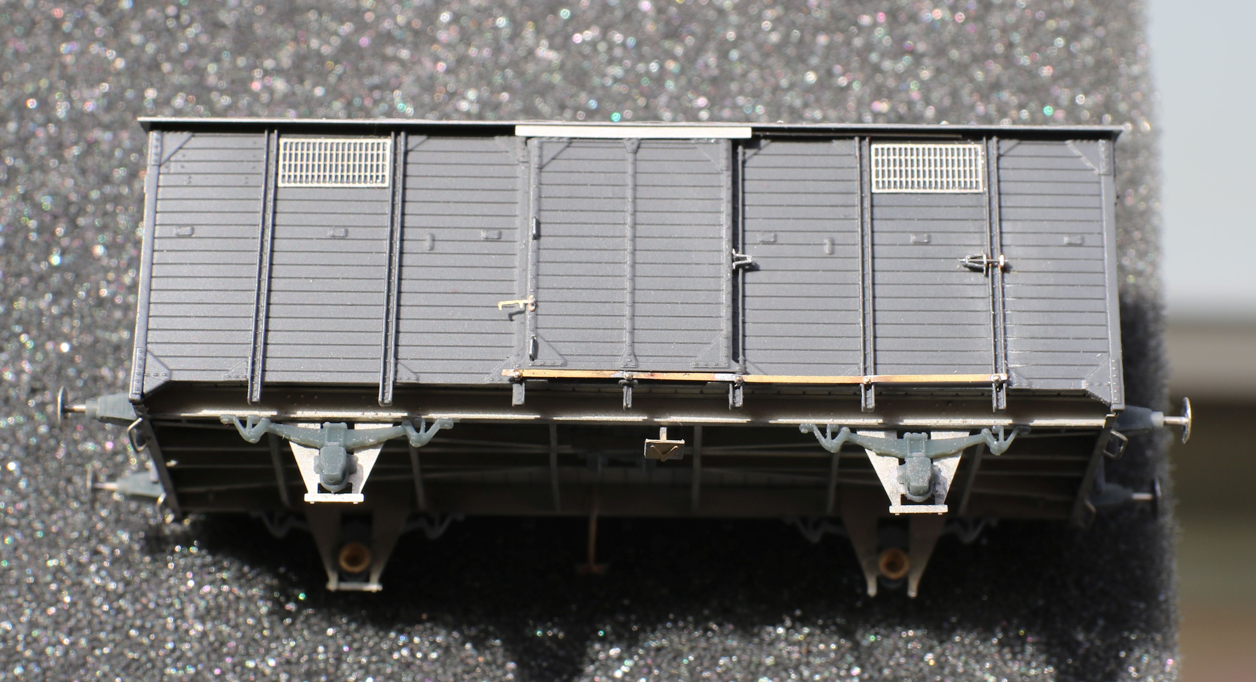 Druhý vůz je upravená skříň z modelu ROCO, původně Klein. Protože skříň modelu představuje vůz SNDVB a je velice pěkná, tak jsem se rozhodl upravit trochu spodek. Původní spodky Klein nejsou moc pěkné, hlavně pod tuto skříň nepatří. Tak vznikl jednoduchý spodek z profilů a leptaných rozsoch se správným rozvorem a využitím dílů připraveých pro zavřený vůz s předchozího příspěvku . Mimochodem ROCO zařadilo do letošního katalogu znova, ale bohužel ve dvojici se zcela nesmyslným modelem vozu s jednou klapkou.