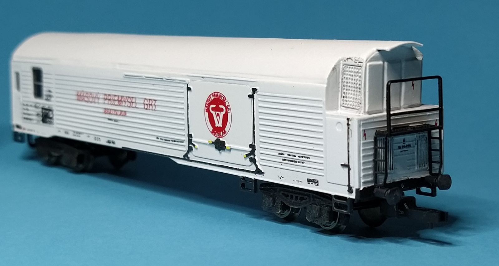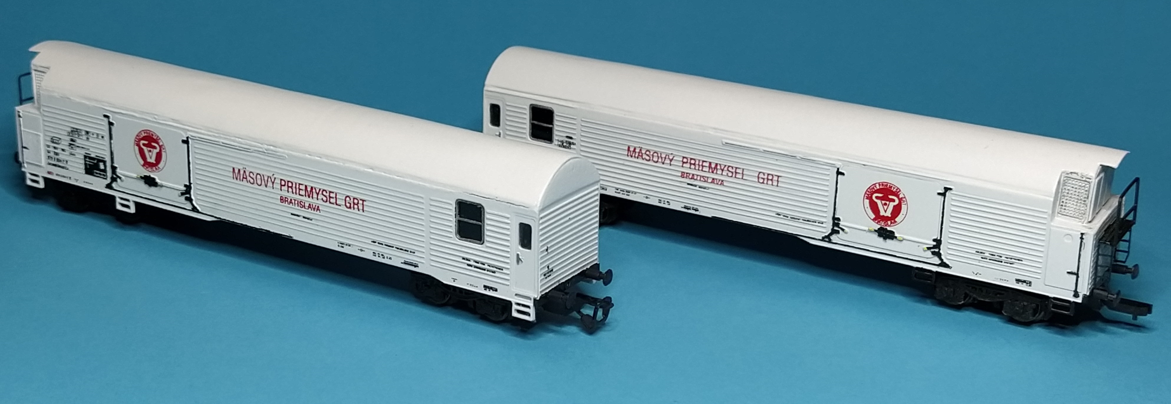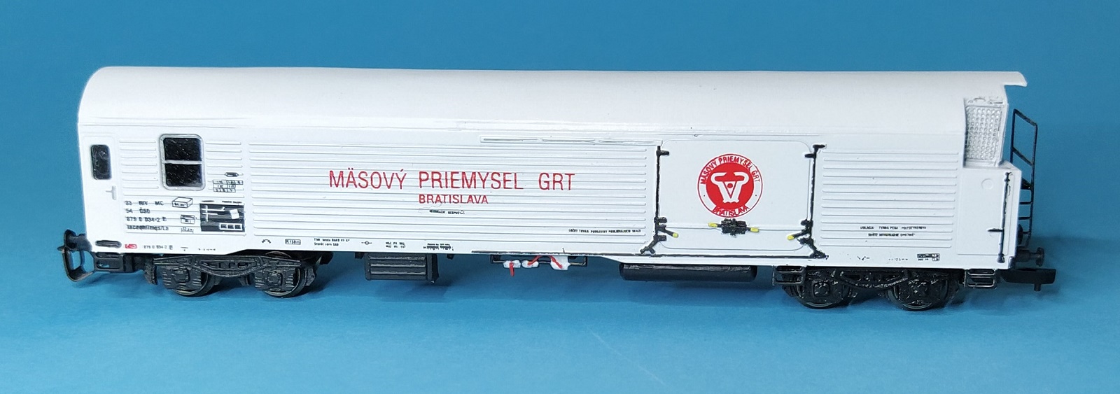 V provedení ČSD byly tyto vozy ještě s popisy Masný průmysl Praha a Mrazírny Praha. Ale na sestavení obtisků mám hodně málo podkladů. Z těch fotek ce se dají najít na netu, nejdou přečíst inventární čísla, vlastně krom velkých nápisů na bočnicích nic víc. Osobně bych taky dal přednost Masnému průmyslu nebo Mrazírnám, takže bych na stávajících obtizcích jen nahradil loga. Obávám se že by takový čin u většiny modelářů nenašel pochopení 8).