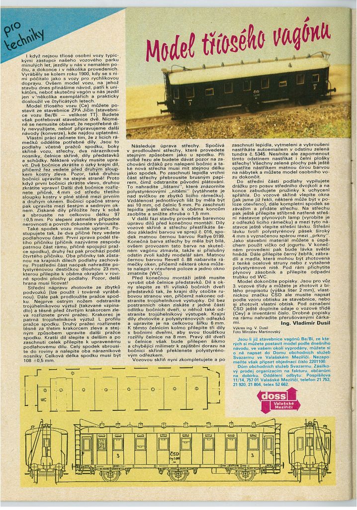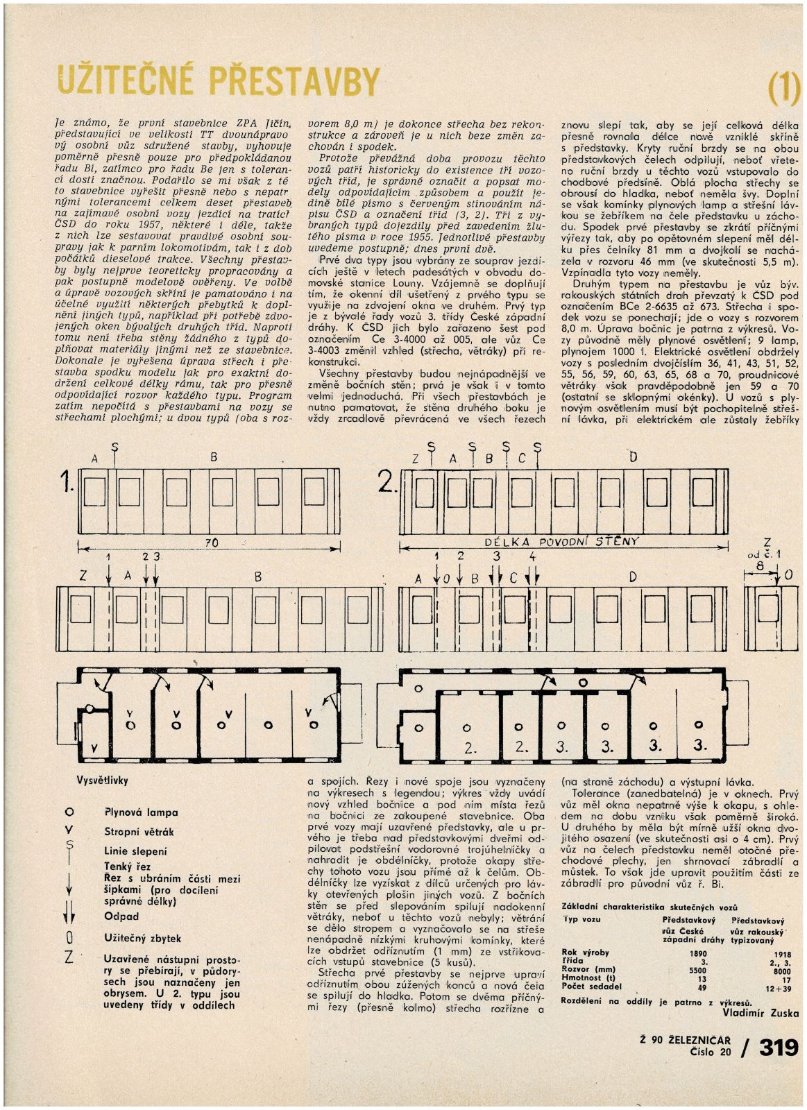 Všichni, respektive my už důchodci, nevím jak mladí, pamatujeme první vlaštovky stavebnic osobních vozů ze ZPA Jičín. Vladimír Zuska napsal a nakreslil v letech 1990 a 1991 seriál 1 - 4 v časopisu exŽelezničář na různé úpravy přestaveb z těchto stavebnic. Aby modeláři snáze našli vlákno, bylo založeno jako samostatné. Snad někomu z vás pomůže, někdo si zavzpomíná a někdo vytáhne stavebnici hluboko zapadlou v útrobách šuplíku a pokusí se o "comeback"