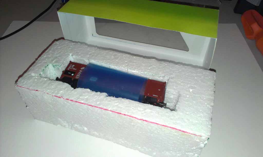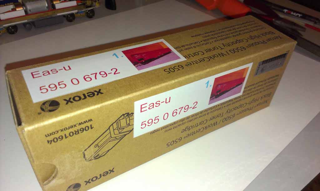 No a aby to nebylo všechno, minulý týden jsem dostal nápad, jak velice rychle "udělat" 8 krabiček na vagony. Obal od toneru a polepka. Vagon tam sedne jak pr..l na hrnec :lol: