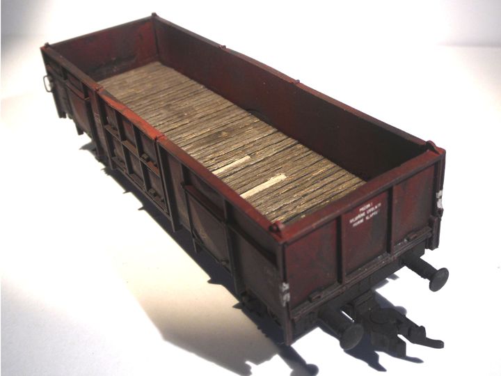 Souhlasím, ta vysoká podlaha vypadá nemodelově, ale nejen to, standardní náklady - uhlí, písek - se do vozu "nevejdou". Navíc celý vnitřek vozu je lakován šedou barvou, podlaha je bez naznačení dřevěných fošen, vnitřní strany bočnic jsou na rozdíl od modelu Vtr od Vacka hladké, bez naznačení prolisů (ostatně sám jsi byl v diskuzi