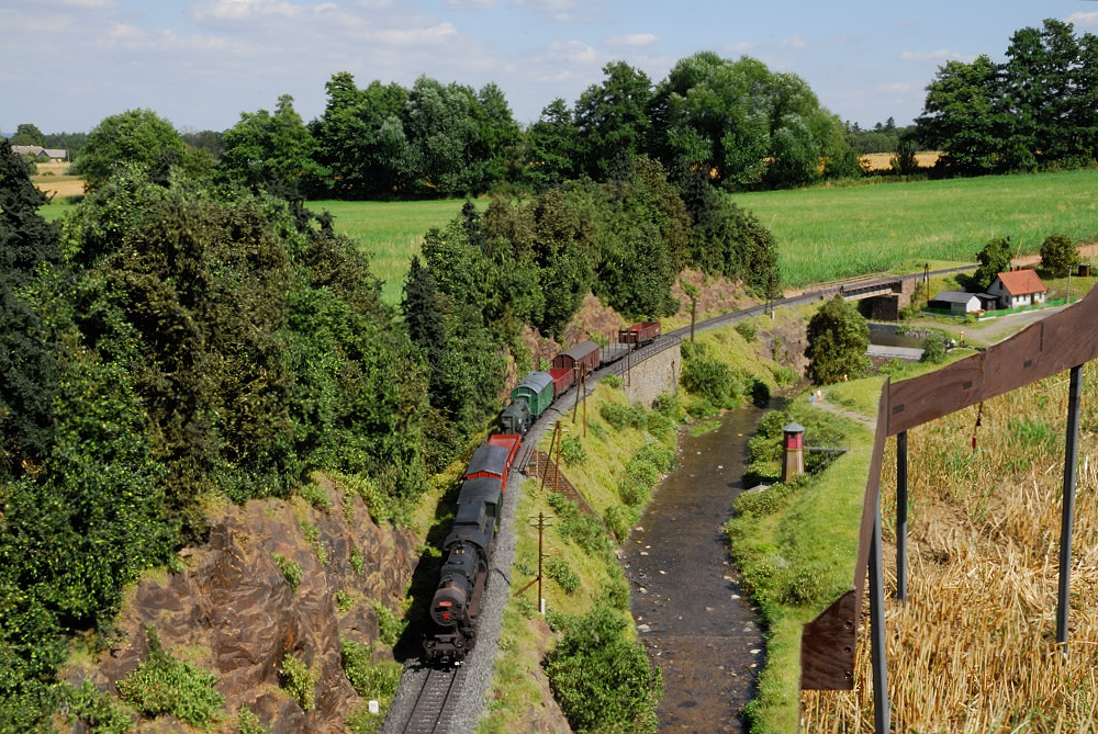 Na setkání se dlouhým bádáním a diskutováním zjistilo, že stavaři usadili trať moc vysoko nad řekou. Tak přišla regulace řeky a doplnění třetího dílu kolegy modeláře. Ten vznikl na motivy říčky Kamenice v úseku mezi železným Brodem a Tanvaldem