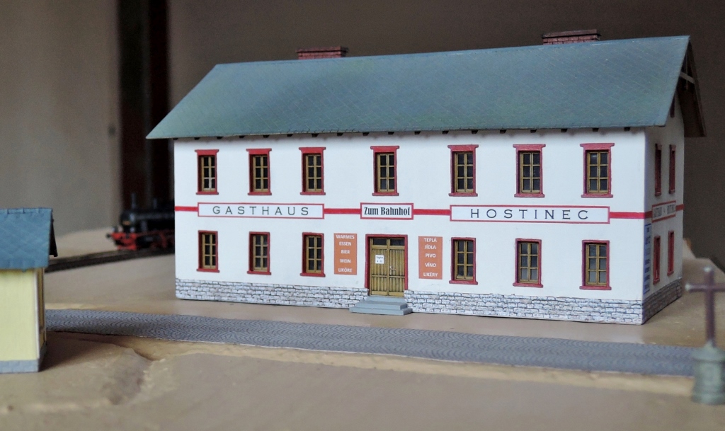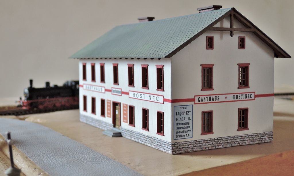 Zippich píše:Dokončena budova hostince Zum Bahnhof. Povinnost označovat úřední budovy na prvním místě „jazykem československým“ podle jazykového zákona z roku 1920 pro hostince samozřejmě neplatila. Nicméně podnikavý hostinský, z jinak čistě německého Machendorfu, češtinou lákal již za monarchie české turisty z opačné strany Ještědského hřebenu, kteří se tudy vraceli vlakem domů. Někdy u něj v sále pořádala své akce i liberecká česká menšina z nedalekého Růžodolu. Dnes již dávno zrušený hostinec tehdy nabízel převážně pivo z Vratislavic (Maffersdorf), jak je zřejmé z reklamní cedule na nároží. Vratislavický pivovar byl již od počátku 20. století součástí společnosti Reichenberg-Maffersdorfer und Gablonzer Brauereien Aktien-Gesellschaft in Maffersdorf (tedy Liberecko-vratislavické a jablonecké pivovary a.s. Vratislavice).