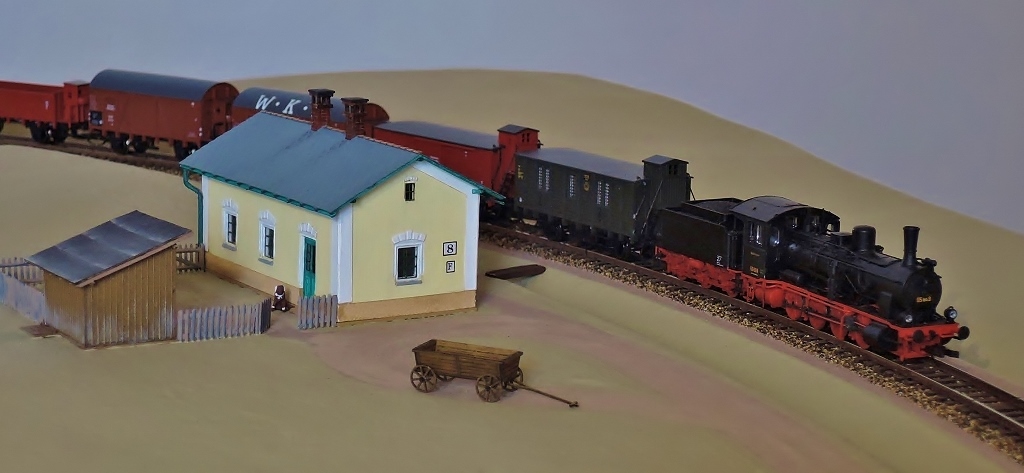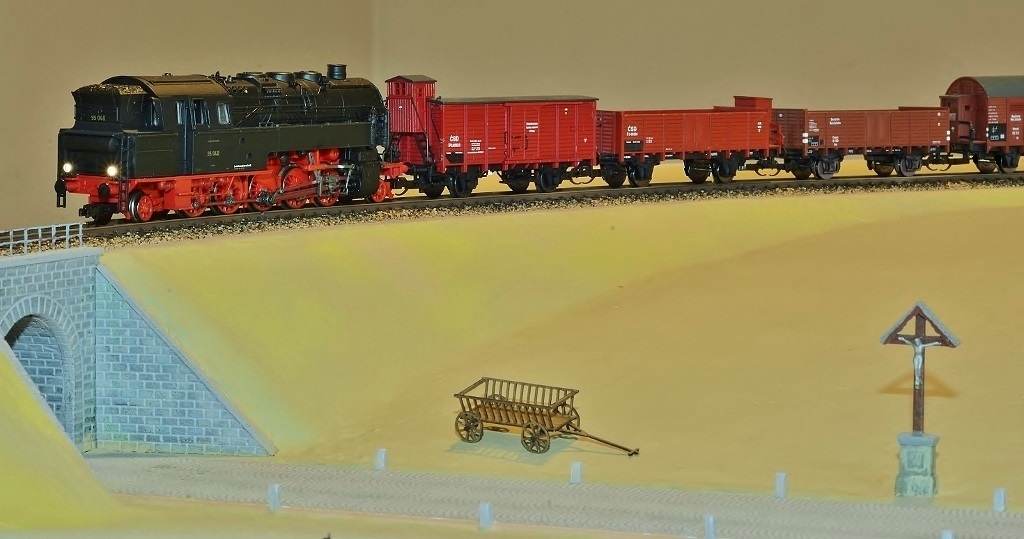 Na trati za hostincem právě nesměle vystrkuje kotel jedna ze žitavských lokomotiv BR 55, původně G7.1, na cestě do Liberce.