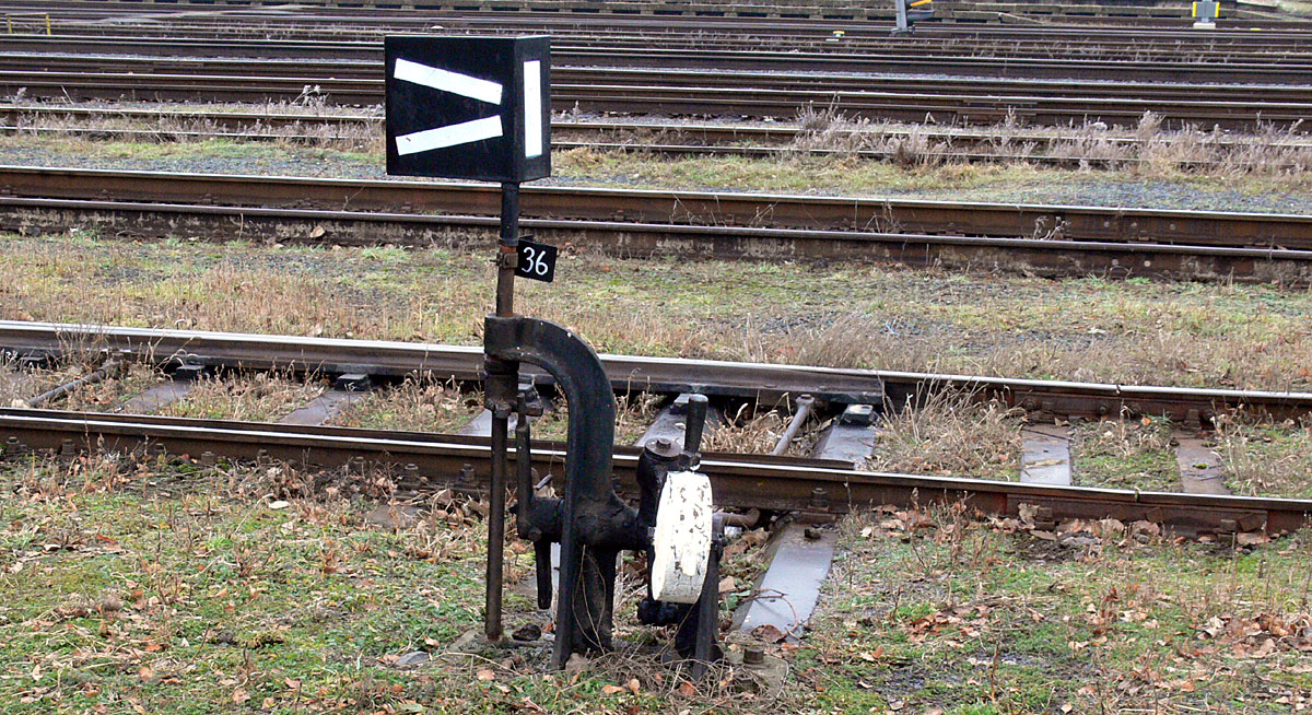 Tady archaická výhybka na stanici v Krnově v roce 2009, dnes už tam není. Kloubové jazyky, navíc ještě spojka mezi nimi. Bohužel tehdy jsem nezjišťoval typ kolejiva - nezajímalo mne to :D