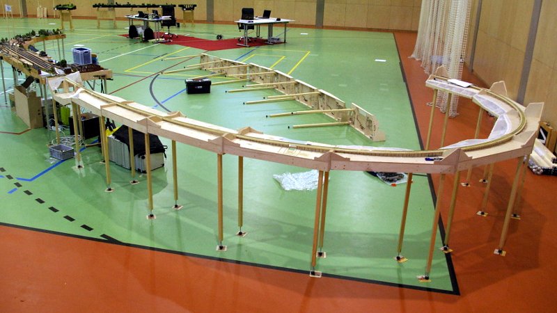 Stoupání - ano - k nadjezdům - křížením tratí, vlečkovým areálům v jiné výšce...., zatím jsem viděl tak do rozdílů 150 mm, ale celé to je jeden modul - neb je nutno dodržet, že na konci má modul výšku 1300 mm na temeni kolejnice a standardizované modulové čelo (evropský standard). Takže klesání, stoupání jak je libo, ale pouze v rámci jednoho modulu, sestaveného třeba s 10 dílů. Nezapomenout na schopnost do toho stoupání vyvézt i zátěž