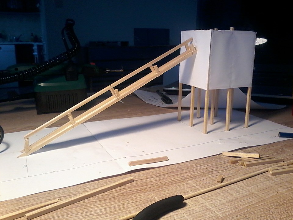 Násypka: Horní část a boky výtahu uděláš a) z Evergreenu, b) samodomo podle článku MirkaTT na odlévání vlnovek. Žebřík z leptu nebo viz níže. Samotné násypky z leptů, byly v diskuzi jako novinky.
