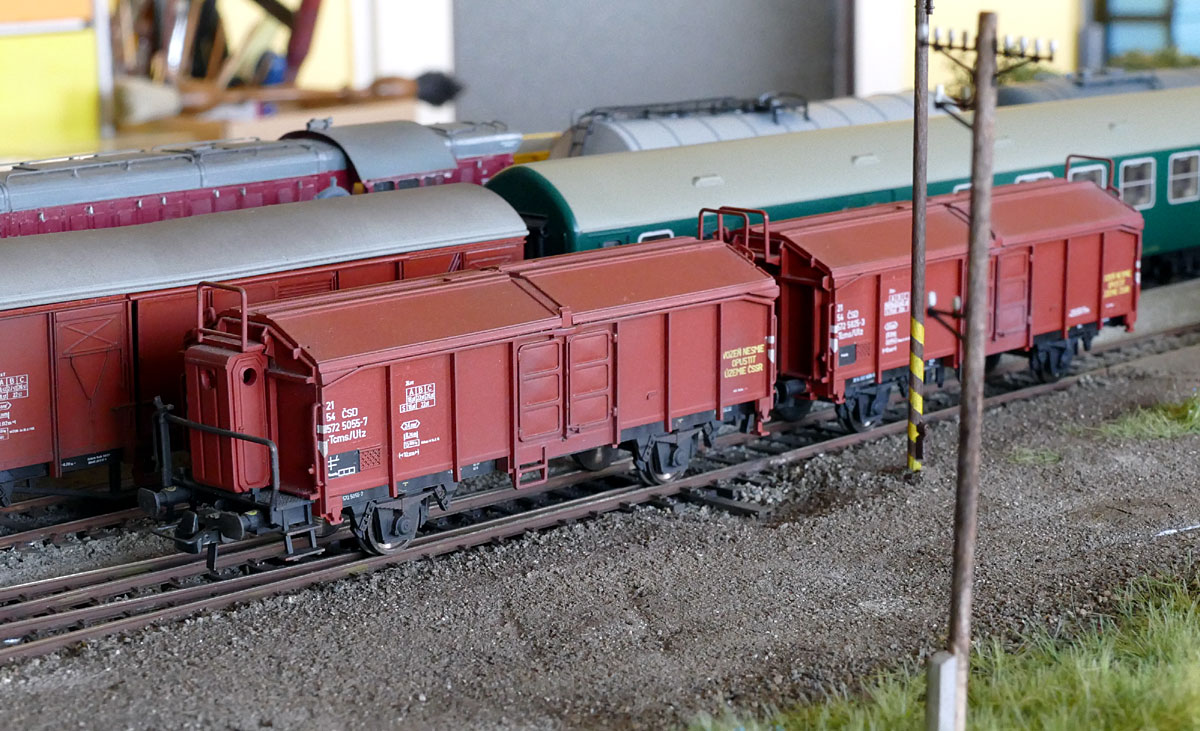 Tady ještě male srovnání vozů - letité modely pana Knížky s úpravami - popis + nátěr a uprostřed modely Albert zatím bez úprav. Jde vždy o takové srovnání - já tomu říkám, porovnání zda modely mohou jezdit spolu :D