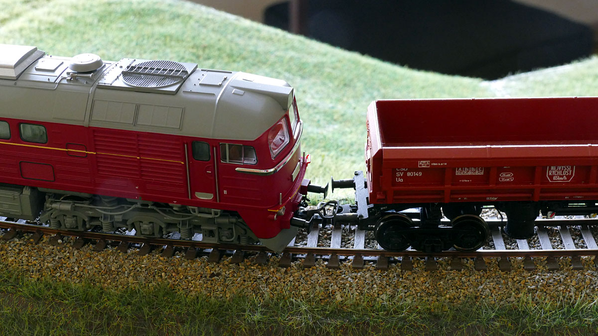 Pustil jsem se do Sergeje PIKO. Sundal pluh s "velkou tlamou" nahradil pluhem přiloženým k modelu do kterého jsem udělal výřez v rozsahu vylisované prohlubně, jen je o cca 1,5 mm hlubší - umožňuje tak výkyv spřáhla cca 2 mm na každou stranu. To stačí i na poloměry do 500 mm. Doma mám min. R 700 mm. Vyměnil jsem nárazníky za nárazníky se správným tvarem talíře, které měla lokomotiva při dodání. Místa spřáhla přiloženého k modelu jsem použil třmenové spřáhlo Klein - je subtilní, bohužel dnes je již nesehnatelné - jedu ze zásob, má malou úpravu jsou odstraněny "packy" pro zvedání odpojovačema. Ještě jsem zapomněl dodat, že není zpět dosazen prodlužovací díl šachty pro spřáhlo a spřáhlo je zasunuto asi o 2,5 mm více dovnitř a pojištěno proti vytažení vteřinovým lepidlem. Originálně uložené spřáhlo ční extrémně daleko před lokomotivu- to je škaredé.