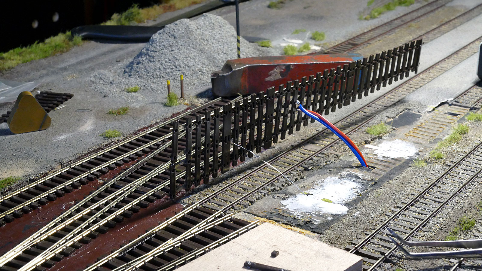 Pro elektrické přípojení již tradiční letování kolmo na patu kolejnice, nelíbí se mi různé letování z boku kolejnic a podobně. Výhybka má prodloužené kolejnice u těch pár mm.