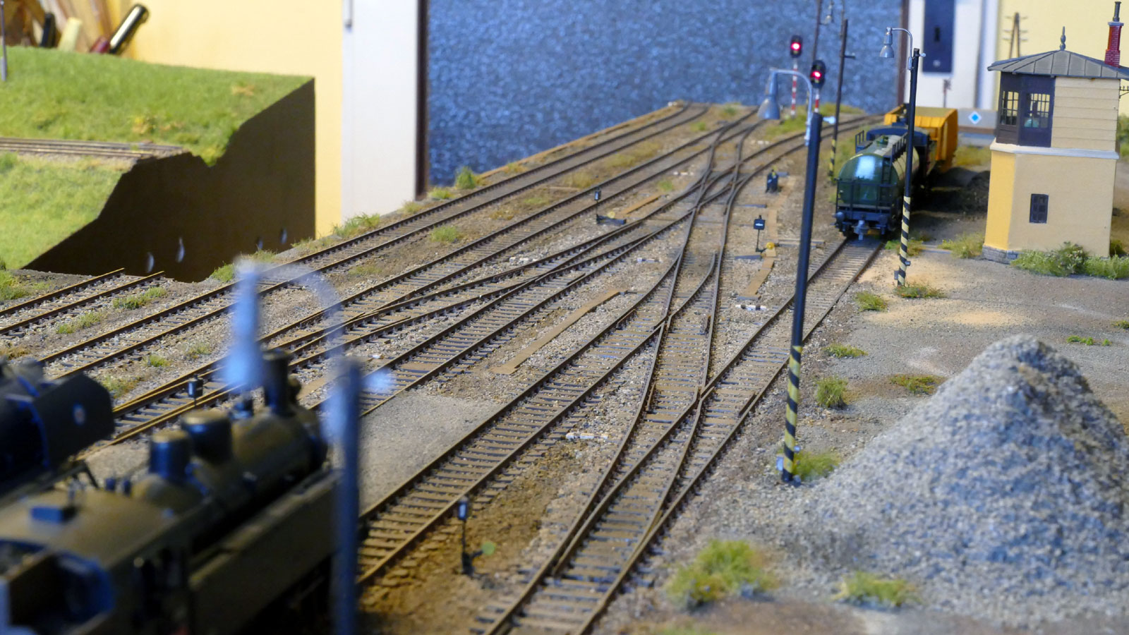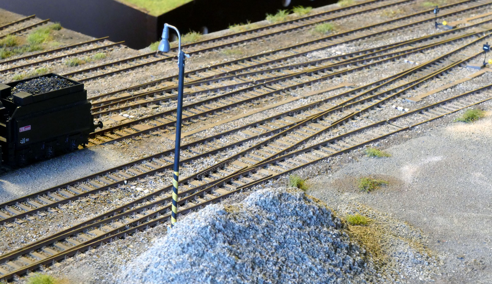 Ještě okrajová zmínka o výhybkách jiných - pro mne je krajní možnost kratší výhybky PECO střední s vodivou srdcovkou - úhel na konci 12 st., poloměr 914 mm deklarovaný. Nic menšího bych ani na domácí kolejiště nebral - už to má pak vše 15 st. na konci.... a to je moc. I z těch PECO jde poskládat zhlaví krátké - jen musím rezignovat na to že budu skládat výhybky za sebe v rozměrech jak je výrobce dodal - to ne, musím řezat posouvat, tak jak ve skutečnosti. No a samozřejmě nemá smysl použít větší profil kolejnic než 2,1 tedy Code 83, lépe 1,9 mm.