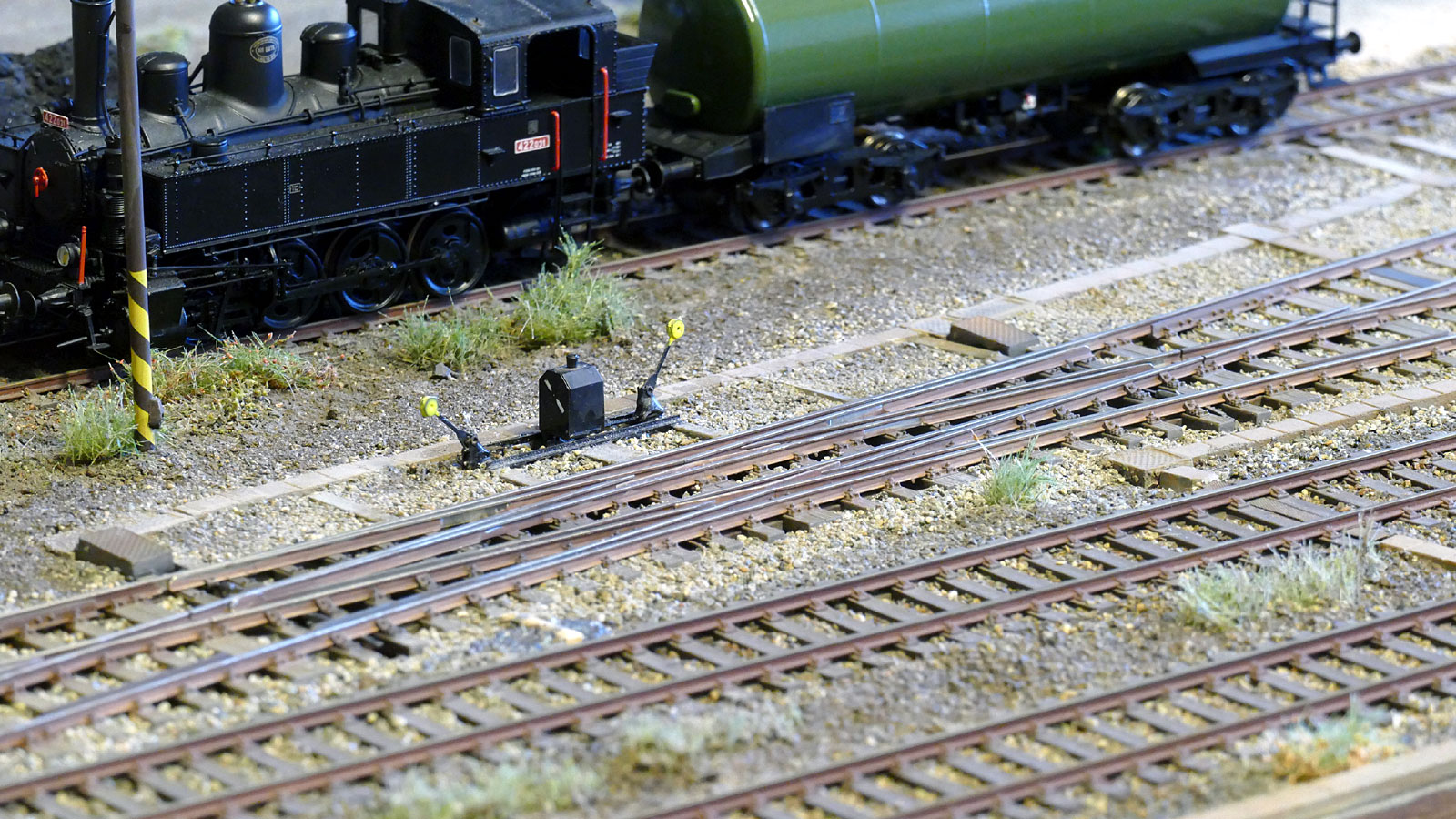 PECO dlouhá s profilem 1,9 mm, vodivě propojené jazyky, odstraněné poslední pražce s americkým mechanizmem - Lipová, dobrým řešením je náhrada kloubových jazyků jazyky ála Tillig - tedy vybroušenými - navrhl a realizoval Cipísek