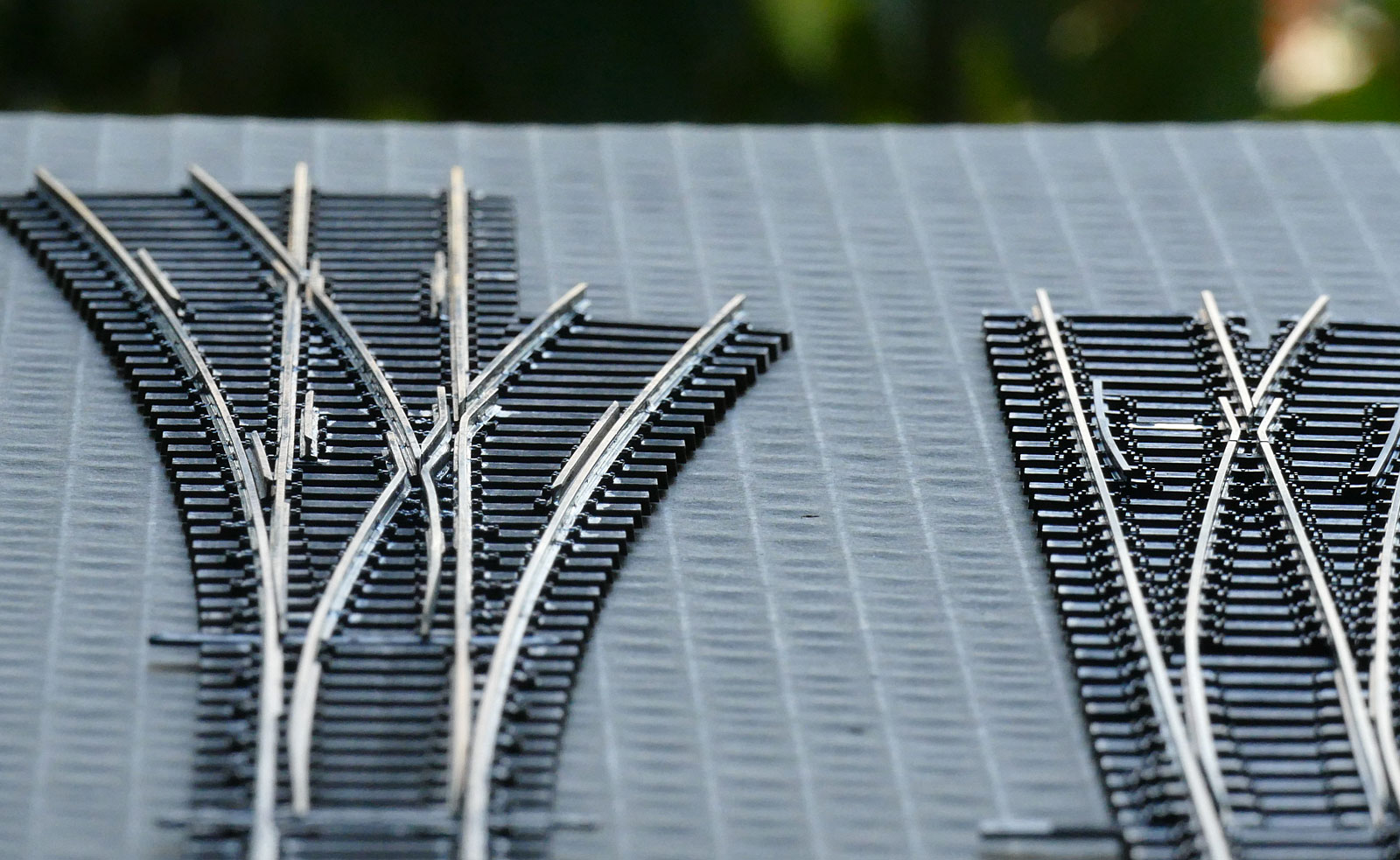 Takže máme výhybky kde jsou dvojité pražce, které u nás se začaly objevovat po válce, aby zase mizely, ale jo, část výhybek je měla (sem tam i dnes má) a vyýhybky bez prodloužených pražců. Z pohledu geometrie je angličan lepší než výhybky 8,6 st. zkrácené ke kombinování s angličanem, ale o tom jindy. Prostě každý výrobce má na výhybkách své nedostatky, jak je ovšem u modelů obvyklé, však on to modelář překousne :lol: