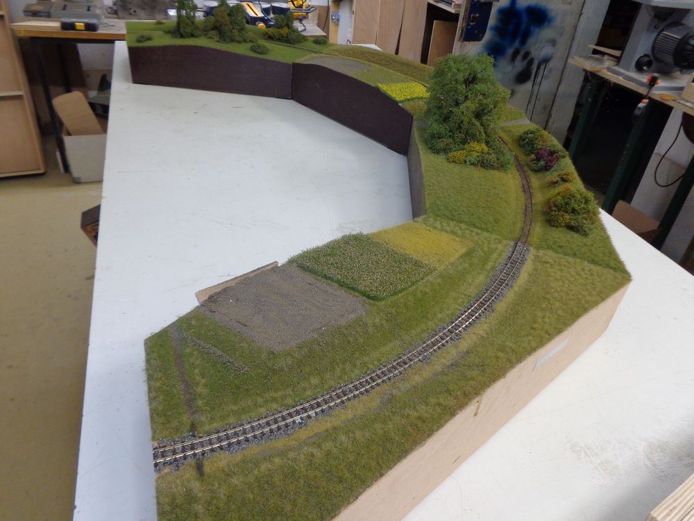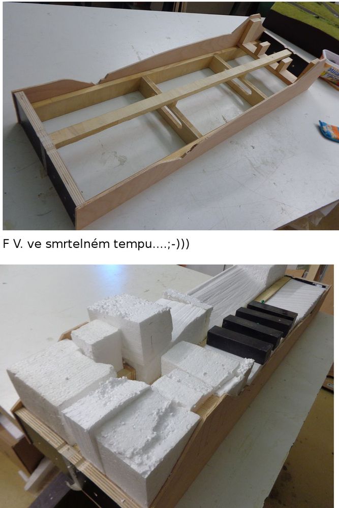 F I. dokončena,F IV.dokončena,celkově máme hotovo čtyři traťové obloukové moduly F I./F II./F III. a F IV.Traťový modul F V. ve výstavbě.