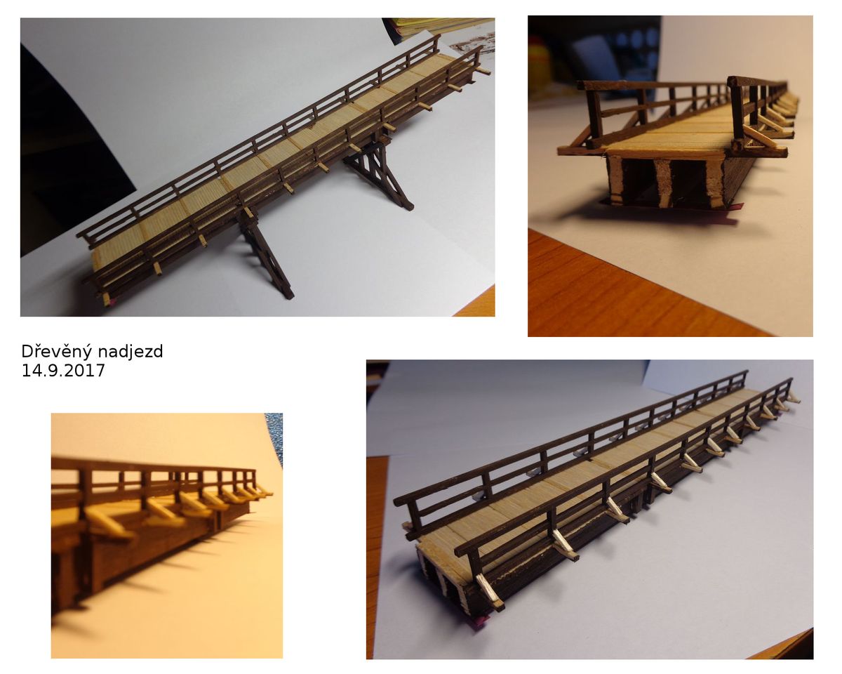 dřevěný silniční nadjezd pro modul F V. je vlastně hotov.Jen jej otestovat na modulu,jak bude sedět a schovat,dokud nebude modul hotov.