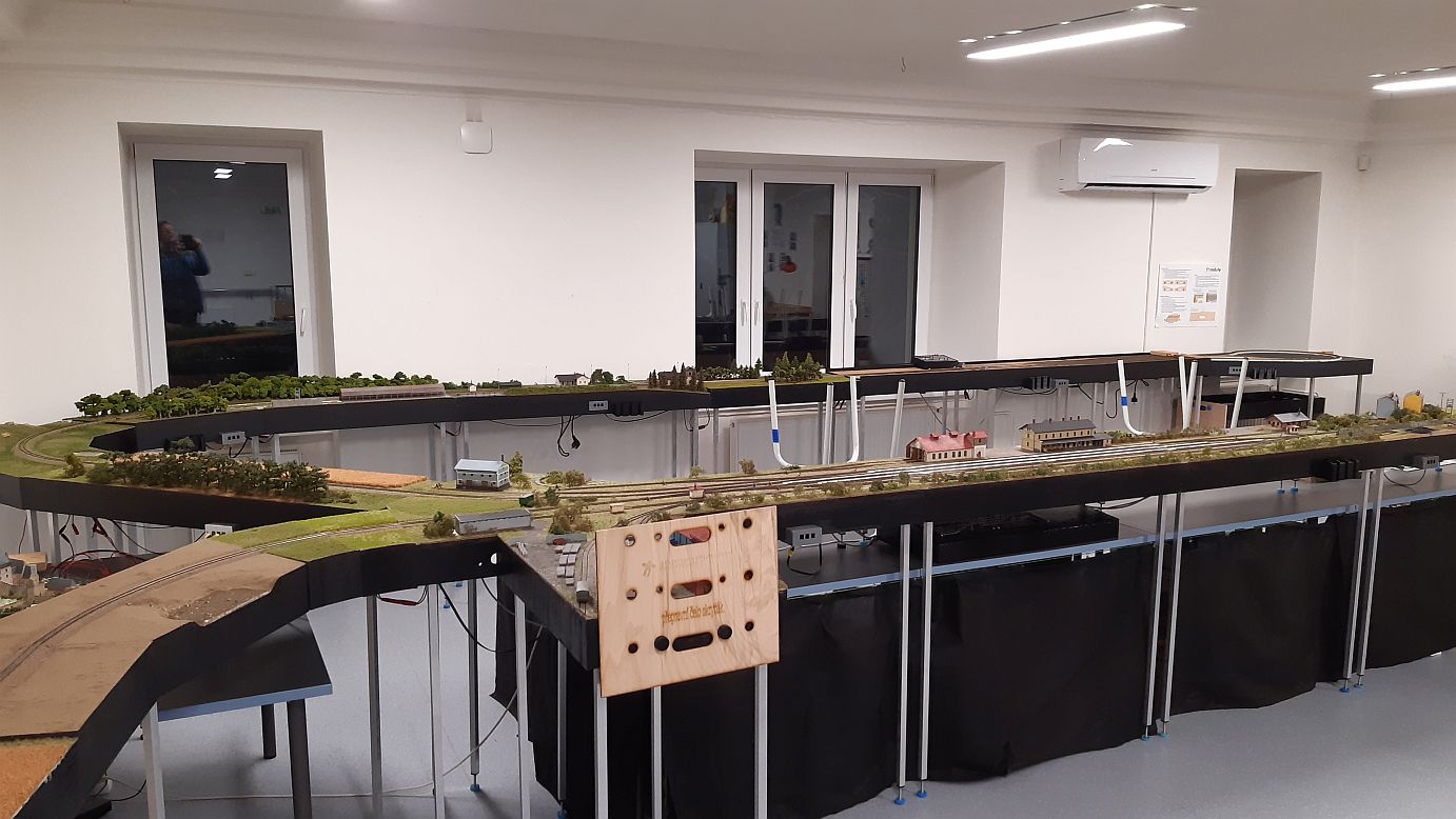 V neděli jsme rozebrali výstavní layout a dnes na kroužku doskládali celoroční, téměř permanentní, sestavu. A kluci ji hned projeli, teda spíš prošuntovali.