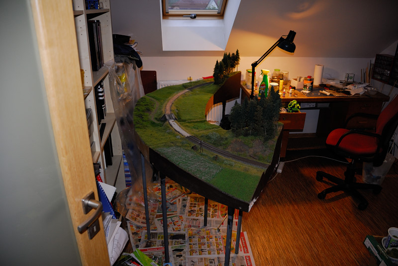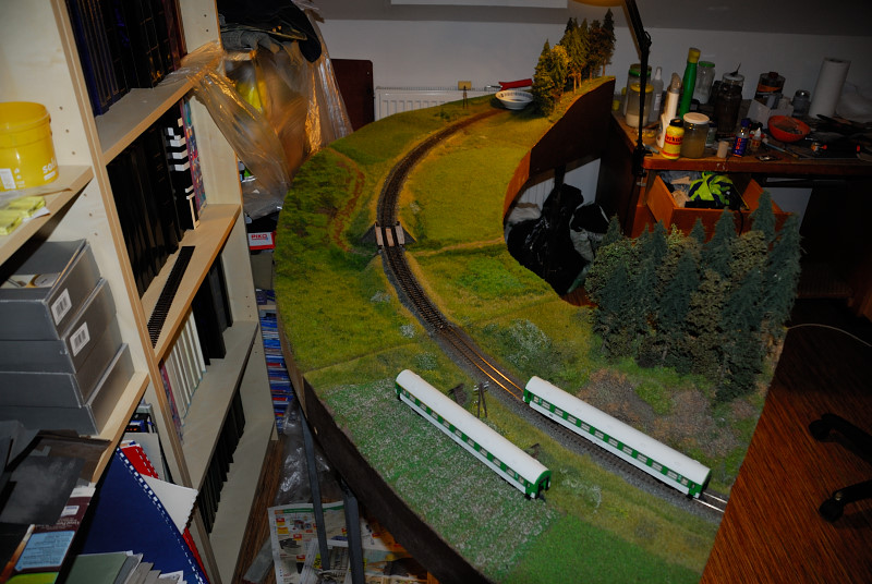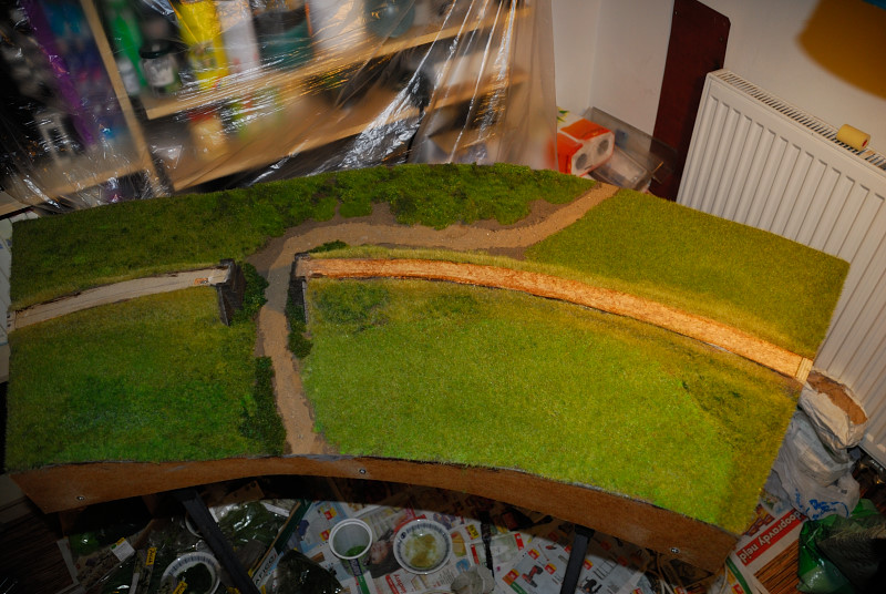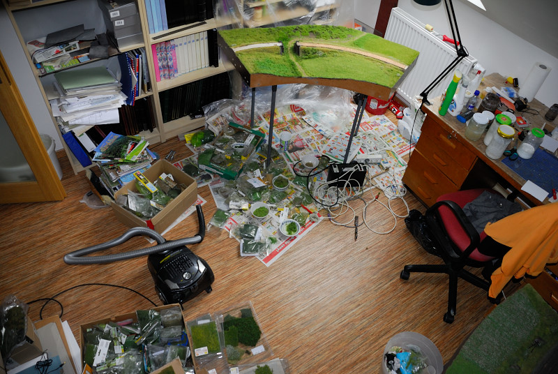 Teď musím dát chvilku pauzu, protože lepidlo z toho, co jsem dělal ze včera ještě úplně nevyschlo. Když jsem vysával, tak jsem sebral trochu toho mechu. Navíc začíná pracovní týden a na modelu bude zase čas jen večer