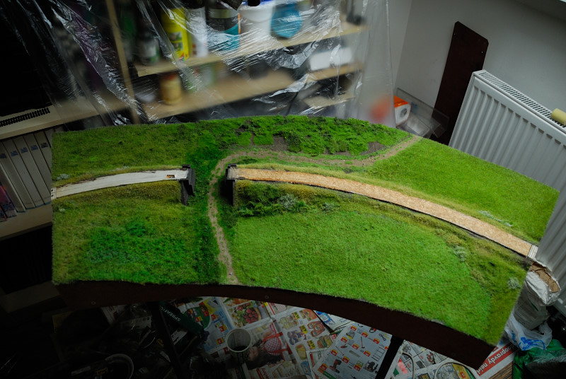 TomBart píše:po zhruba čtyř hodivém zaschnutí a vysátí kraje udělám louku na posledním největším fleku. Chci to trochu odlišit, takže základ je hlína, bez Purexu. rovnou natřeno lepidlem a na flokováno. Opět ta směs, co jsem vysál (tvoří asi 1/2) a k tomu HEKI 3368. Tu Heki používáme na styk s jinými moduly. Aby to trochu sedělo a nebylo to jako pěst na oko.