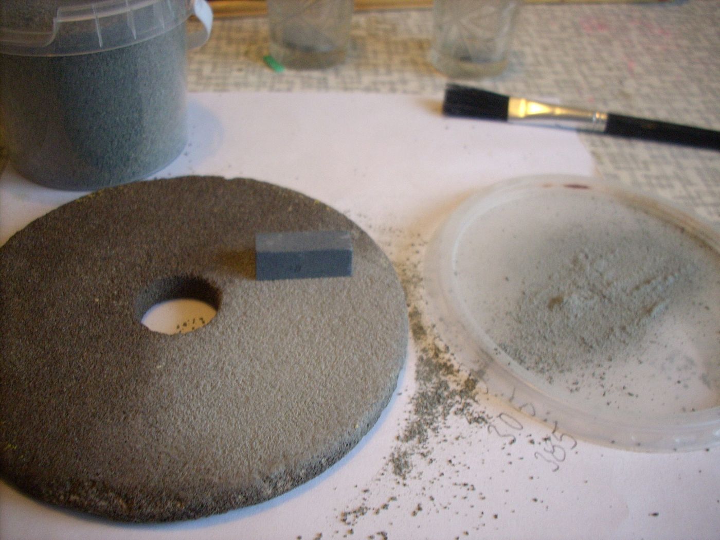 Protože sehnat prach od POLAKA je nadlidské úsilí a měl jsem k dispozici jen štěrk,tak jsem přemýšlel,jakým způsobem prach vyprodukovat pro sypané nástupiště a silničku.Napadali mě různé varianty,až jsem zabrousil do historie lidstva do prvobytně pospolné společnosti,viz počátky zemědělství.Ano,aby byla mouka,obilí se mlelo mezi dvěma žentoury,tak co bych nemohl mlét štěrk.