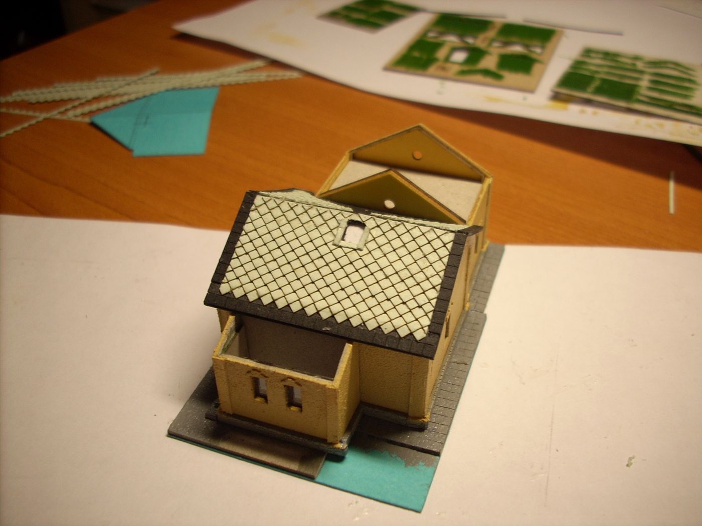 Trošku ti naruším domečkové vyprávění a podle slibu dodávám doplňující foto k mému pivovaru. Rozložil jsem to jen na zemi, protože jsem drátoval, ale je vidět současný stav. Vpravo bude vlastně jedna velká kulisa, sladovna, sklady ječmene, chmele atd. Mezi budovy bude odbočovat z vozové točny krátká kolej ke kotelně se skladem uhlí.